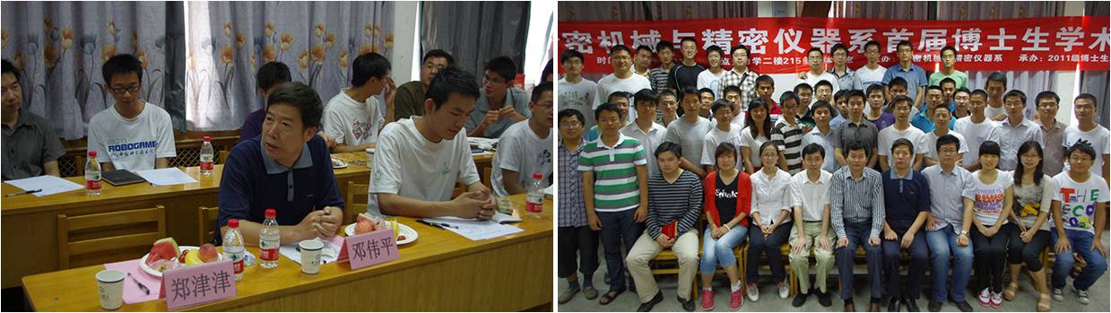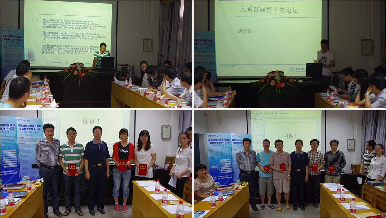 2012年5月31日上午8:30,由精密机械与精密仪器系主办,2011级博士生班承办的“精密机械与精密仪器系首届博士生学术论坛”隆重开幕,出席论坛的领导及师生有:校人力资源部部长、九系博士生导师褚家如教授,系主任、博士生导师郑津津教授,博士生导师冯志华教授,系党总支书记邓伟平老师,青年教师代表何清波副教授和董二宝博士后,以及全体在读博士研究生及转博的研究生。另外,九系博士生导师孔凡让教授、王克逸教授、冯志华教授、沈连婠教授、杨杰教授、竺长安教授、郑津津教授、黄文浩教授、褚家如教授、翟超教授等10位教授为论坛题写寄语,对本次论坛表示关心和关注并寄予广大博士生殷切的期望。