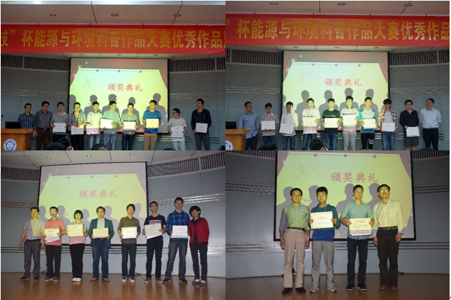赵钢老师首先感谢了资产与后勤保障处及中徽机电科技股份有限公司对此次活动的大力支持,以及学工部和校团委的指导和科技传播与科技政策系的协助。他指出,能源与环境是关系国计民生的两个大领域,通过科普的方式让民众了解相关知识有助于增强节能减排和保护环境理念,因此科普作品比赛非常必要且意义重大,并希望能做成我校品牌活动,一直办下去。程凯老师接着以我校用水用电情况为例,指出节水、节电还有很大空间,而本次参赛作品形式多样,内容丰富,发人深省,有些作品非常值得借鉴,并鼓励在场的学生多多参与这样的活动。殷振康总监对本次活动的圆满举办表示祝贺,高度评价了此次活动的意义以及所取得的成就,希望后期能够多举行类似活动;同时,希望同学们努力学习,与企业共同承担社会责任,推动我国的节能减排事业的发展。参赛选手代表魏志远从参赛选题,团队合作,节能减排意义三个方面分享了自己的参赛感想。随后李峰、赵钢、詹月红等老师分别为获奖选手颁发了获奖证书。