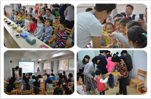 接着来到的是激光3D内雕体验展区。一进入展区,大家首先就被在展区前排放置的各种激光内雕产品所吸引,有美丽的蝴蝶和玫瑰花,世博中国馆模型、人物像等等。近70岁高龄的沈连婠老师以通俗易懂的语言向大家介绍了三维创意实验中心概况以及激光3D内雕技术从设计到制作的整个流程。最后,由讲解员向大家展示加工的实际过程,不到两分钟,一朵漂亮的玫瑰花就在水晶玻璃中绽放了。在展示结束,助教还通过有奖竞答的方式,既给小朋友们送出了激光3D内雕制作的精美小礼物,又教会了他们一些基本的科学知识。