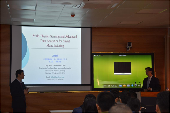 14日上午9点,高晓旸教授在力二楼215多媒体教室做了题目为“Multi-Physics Sensing and Advanced Data Analytics for Smart Manufacturing”的主题报告,此次报告属于“中国科学技术大学研究生教育创新研究计划——高水平学术前沿讲座”系列报告会,精密机械与精密仪器系副主任张世武老师出席了本次报告会,报告会由何清波老师主持。