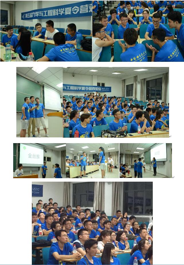 晚上,营员与志愿者同聚3C203教室,举行了一场别开生面的营员见面会。大家共同观看了《科大印象》宣传片,对科大的科研、人文环境有了最初的认识。童静老师向营员们介绍了夏令营期间所须的注意事项,其中特别强调了营员在营期间的安全问题,并在发言最后表达了对营员们的美好祝愿。营长李晗同学向营员们详细讲解了夏令营期间的日程安排。之后,在主持人雷州群同学的带动下大家开启了期待已久的主题活动。