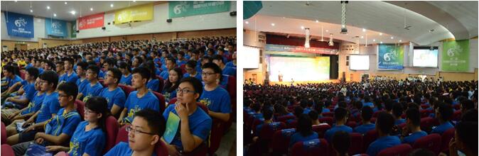 18号夏令营开营的第一个上午,校园中穿着五颜六色营服的夏令营营员在志愿者引导下有序的进入东区大礼堂,2017届优秀大学生夏令营如期的拉开了序幕。