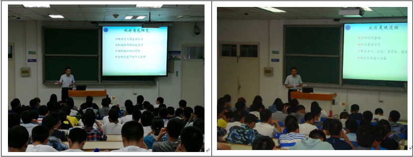 帮大家带入大学生活节奏之后,罗喜胜教授又提出一个实际的话题:成绩才是硬道理。这部分内容让对未来学习情况未知的大家有些紧张。数理基础被首先提出,这两者作为所有学问的铺路石,重要性不言而喻;罗喜胜教授骄傲地表示科大比很多同级高校更胜一筹的原因就包括全校学生的数理基础扎实深厚,同学们回应以自豪并且自信的掌声。之后是提醒同学们每天都要进行英语学习,并且说明自己通过看美剧、翻译字幕学习英语的真实经历。大学成绩事关专业的选取、能否出国、能否获得奖学金以及日后的就业问题,才更加需要重视,需要大家提高学习的积极性,并且做好长期奋斗的准备——已经学过十几个年头的我们,才刚刚打开专业学习的大门,学习的路还要走上一辈子。