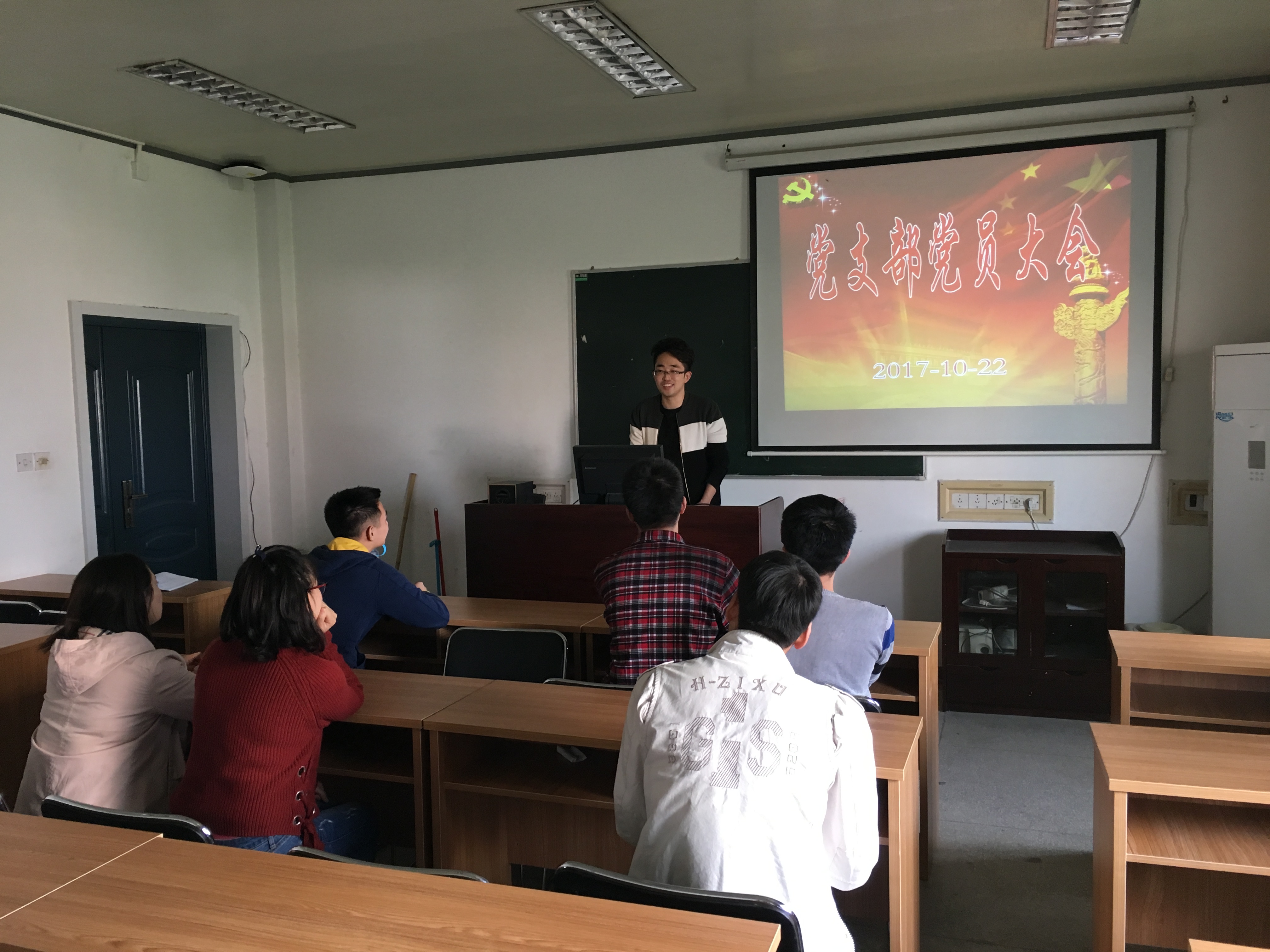 10月22日下午,工程科学学院13系2017级硕士生党支部在力一楼412会议室组织党员同志参加党员大会,观看中共十九大开幕会,学习习近平总书记重要讲话精神。会议由支部书记刘阳主持。