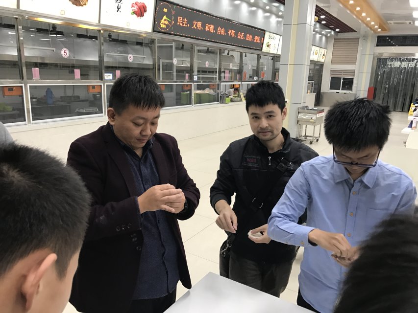 活动当晚6点40分,班委在团支书金继东的组织下提前到达金桔园餐厅进行包饺子活动的准备工作。虽然班委们都没有吃晚饭,但是一想到接下来要进行的盛会,大家便充满了期待,饿并快乐着。到了6点55分,同学们陆陆续续到达金桔园餐厅,更为惊喜的是我们大家庭的两位和蔼可亲的班主任也准时到达“饺子宴”现场和同学们一块度过这个难忘的夜晚!准备好一切相关事宜后,“饺子宴”按照预定时间准时开始,为了能让大家吃到美味健康的饺子,同学们纷纷前去洗干净手,然后排列在桌前跃跃欲试,摆放好饺子馅、饺子皮、清水和装饺子的大盘之后,同学们正式开始了他们的“包饺子之旅”!