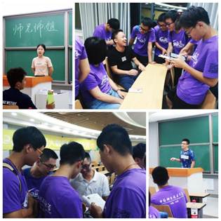傍晚,伴着太阳的余晖,志愿者和营员从酒店出发前往科大西校区参加营员见面会。在见面会上,负责力学与工程科学夏令营的童静老师首先强调了夏令营期间的注意事项,表达了对营员的美好祝愿,营长徐泽来同学为大家详细讲解了夏令营期间的行程安排。通过一个简单的击鼓传花游戏,营员们互相自我介绍,让现场气氛瞬间活跃起来。“未来之城”、“人肉点钞机”等有趣的小游戏让教室充满欢声笑语。