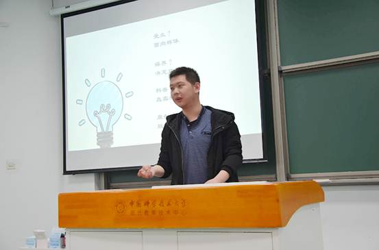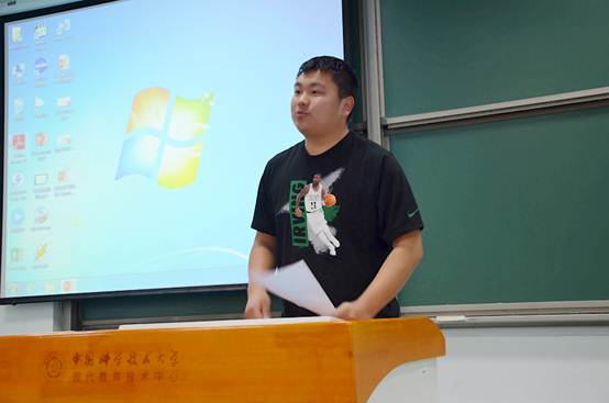 首先由袁鑫华学长展示A类优秀作品,他们团队进行了了中科大用电情况调查。他们对科大宿舍楼、教室等建筑的用电情况进行调查统计,最后绘制出一张科大用电随时间变化的折线图。他提醒同学们在进行此类调查时要保证全面客观,样本要多且可信,最后要对这些数据合理处理分析,提出自己的观点、改进措施等等。