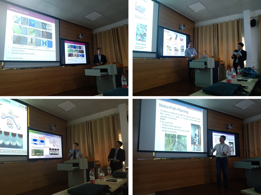 分会场报告于上午8:30准时开始,郝崇磊博士的报告题目为“基于仿生界面的液体输运调控及应用”,报告从自然界中的特殊动植物表面浸润特性出发,包括防雾、超润滑、自清洁、水收集等,研究了多种仿生界面上液体的输运特性,并通过仿生结构实现了特定的功能调控;刘鹏程博士的报告题目为“Grasping in Clutter: How to Train your Robot?”,报告以抓取类机器人为研究目标,从抓取路径生成算法、抓取软体机械手传感等多个方面介绍了如何实现在多目标中实现机械手对目标物的抓取训练;黄海水博士的报告题目为“构建多相系统,创新生物保存”,报告从生物保存的背景及重要性出发,介绍了对于微小尺寸的细胞和组织采用“Local-vitrification”保存方式以及对于大尺寸组织和器官采用“Deep-supercooling”保存方式这两个不同层面的生物保存方法;钟俊文博士的报告题目为“Flexible Energy Harvesters, Sensors, and Actuators Based on Electret and Piezoelectret for Human Interactive Systems”,报告中介绍了人机交互系统中基于驻极体和压电驻极体的柔性能量采集器、传感器和执行器;董昱博士的报告题目为“静电纺丝纳米复合材料纤维:研究进展和未来趋势”,报告从纳米复合材料展开,讲述了基于静电纺丝纤维的研究进展,包括材料设计、结构设计、应用等,并对该领域的未来发展做了展望。