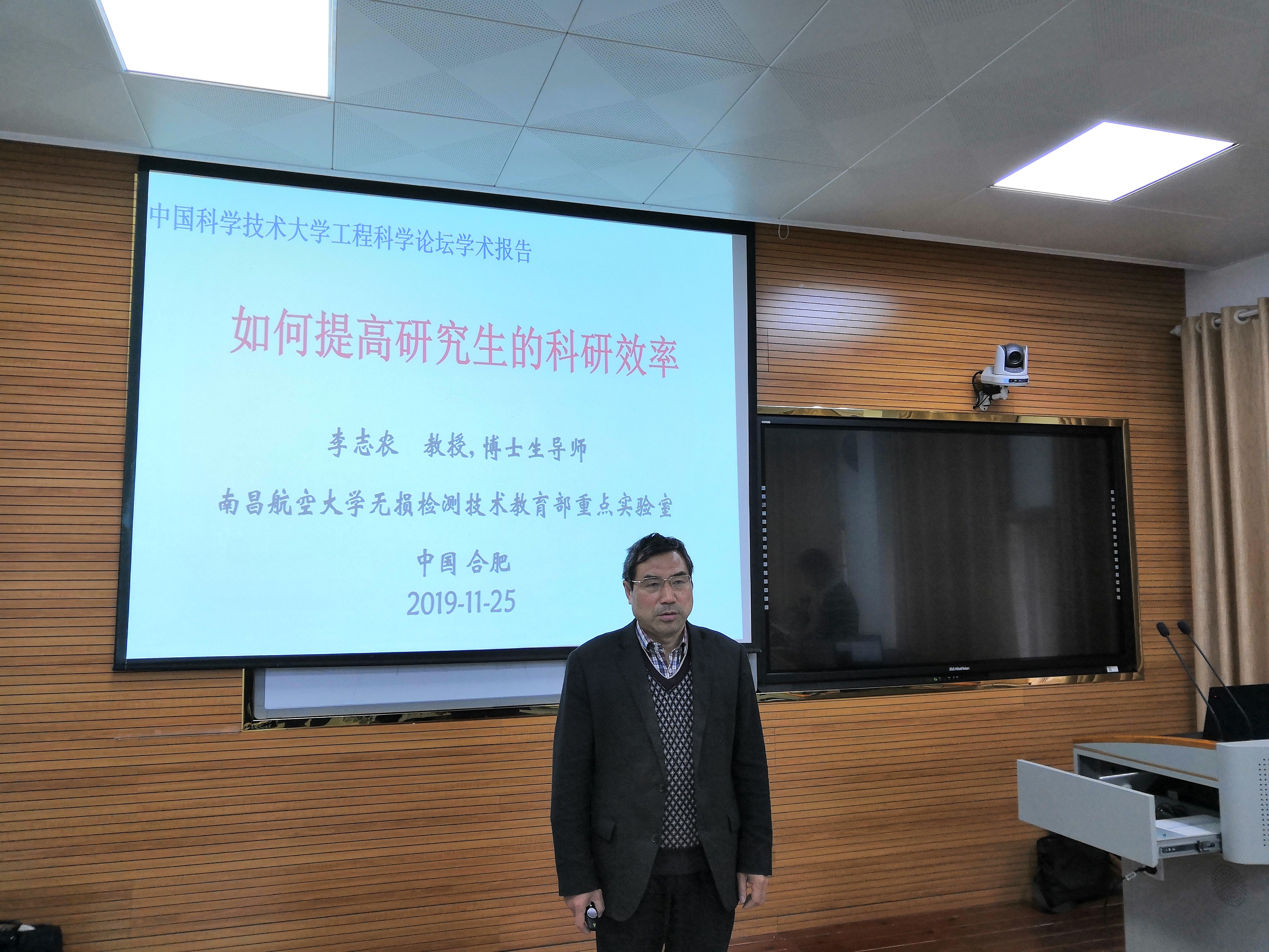 11月25日上午10点在力二楼215教室,南昌航空大学无损检测技术教育部重点实验室李志农教授应邀为我院师生做题为“如何提高研究生的科研效率”的学术报告。报告会由我院毛磊研究员主持。