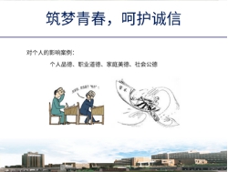 会议首先围绕着诚信的重要性及意义展开,张老师从国家、社会和个人的角度一一解析诚信重要性。诚信作为社会主义核心价值观,对治国、立身所起到的不可或缺的作用,并结合古今举出正、反实例,详细阐明了诚信是立生之本,诚信缺失将会对以后的工作和生活带来不良后果和难以克服道德障碍。