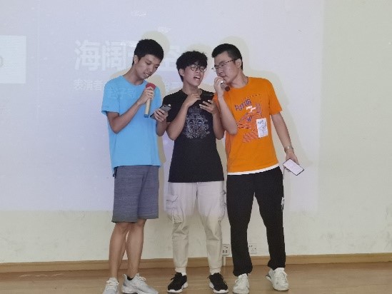 在晚会中,掌声和欢呼声此起彼伏,台上台下成了一片激情四溢的海洋,每一位同学都在工科四班这个大家庭之中欢畅。在所有节目表演完后,在两位主持人的主持下,工科四班的同学们开始做起了互动游戏,台上台下到处充满了欢声笑语。