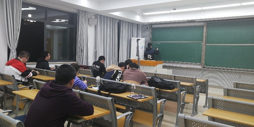 为调动全班同学学习积极性,营造良好的学习氛围,并为准备考研的同学提供一些帮助,热科学和能源工程系2018级本科班班长陈海鹏和一批班级成绩优异的同学制定了考研交流课堂的计划,他们分别准备考研相关的科目,从而向准备考研的同学进行讲解并提供答疑。