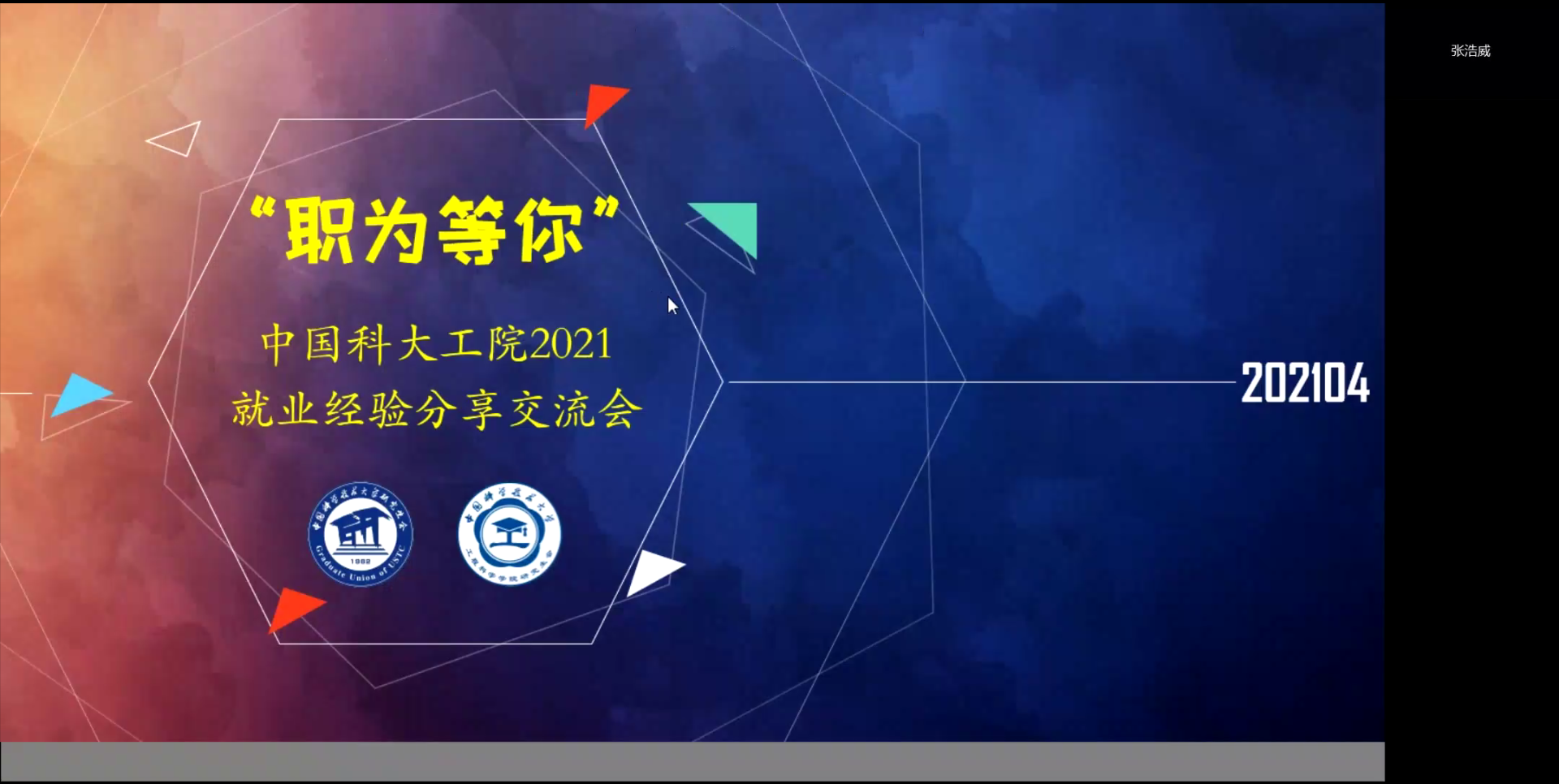 2021年4月8日晚7点,“职位等你”-中国科大工院2021年就业经验分享会在腾讯会议上成功举办。本次就业就业经验分享会是中国科大研究生会“职为等你”就业经验分享系列活动的子活动,由共青团中国科学技术大学工程科学学院委员会主办,工程科学学院研究生会联合承办。分享会采用线上和线下共同宣传的方法,共计四轮宣传,仅微信端阅读量达到500。在线会议室参与人数150+,在各学院同类型就业经验分享会中领先。