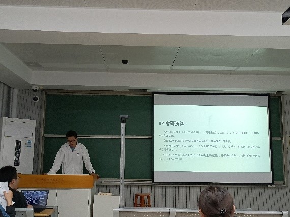 2021年4月24日晚上七点,在教室3A104由陈海鹏主持本次交流会,林泽权同学和邓祺同学分别上台分享他们的考研经历。