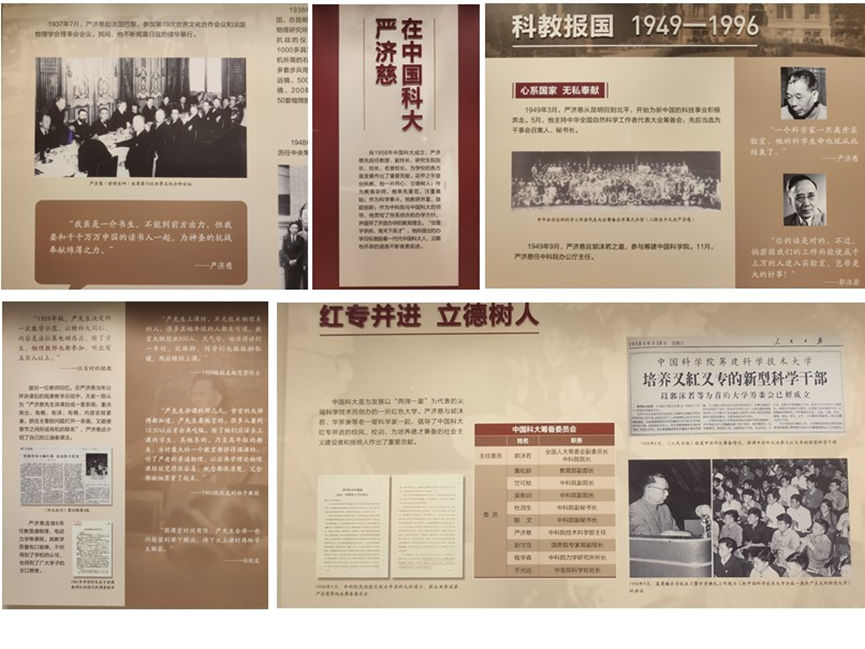 在校史馆,讲解员同志介绍了科大的建校历史:在急需“两弹一星”人才的时代背景下,在邓小平、聂荣臻等党和国家领导人的亲自关心下,中国科大应运而生,郭沫若、严济慈、钱学森等大师纷纷挂帅。1958年9月20日在解放军政治学院大礼堂隆重举行了中国科学技术大学成立暨开学典礼,宣告了科大的诞生。后因 “文化大革命”中国科大自1969年12月开始迁入安徽,至1970年10月才基本完成搬迁。学校迁入合肥时,仪器设备损失2/3,教师流失1/2以上。教学、生活用房严重不足,校舍面积不到6万平方米。1972年,全校讲师以上职称的教师不足百人。在学校濒临解体的极端困难条件下,中国科大全体校职工在校党委的领导下,满怀对学校的拳拳挚爱,对科学的孜孜追求,自强不息,开始了艰难的第二次创业。60多年来,中国科大从为“两弹一星”培养尖端人才,到走出“墨子号”量子科学实验卫星、铁基高温超导材料、暗物质粒子探测的科教报国之路;从创造性“全院办校、所系结合”办学,到首创少年班、研究生院;从一流高校中“办学历史最短、办学规模最小”,到创造出“千生一院士、七百硕博士”的佳话。
