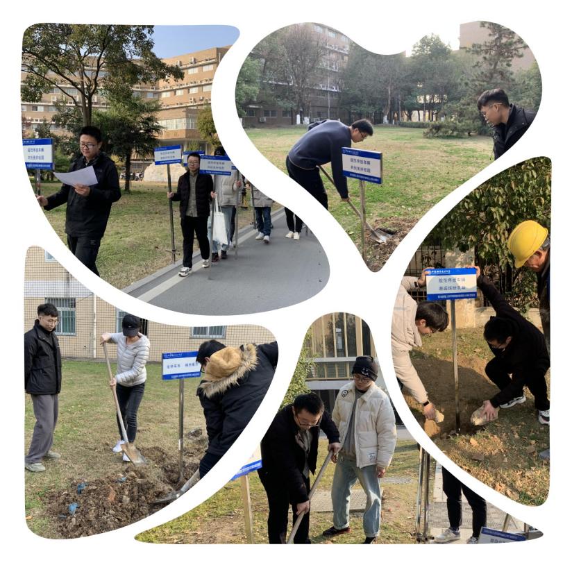 活动成于党员通力协作。支部同志们发扬不怕苦不怕累的精神,积极配合工作安排,分组分工完成标牌的安放,基本实现西区全覆盖。有的同志倾倒混凝土,鞋子弄脏了也毫不在乎;有的同志挥舞铁锹,为标牌夯实地基;有的同志负责扶好标牌,数十分钟纹丝不动。路过的同学纷纷伸出大拇指,同志们的热情和努力为寒冷的冬日带来春天般的温暖。