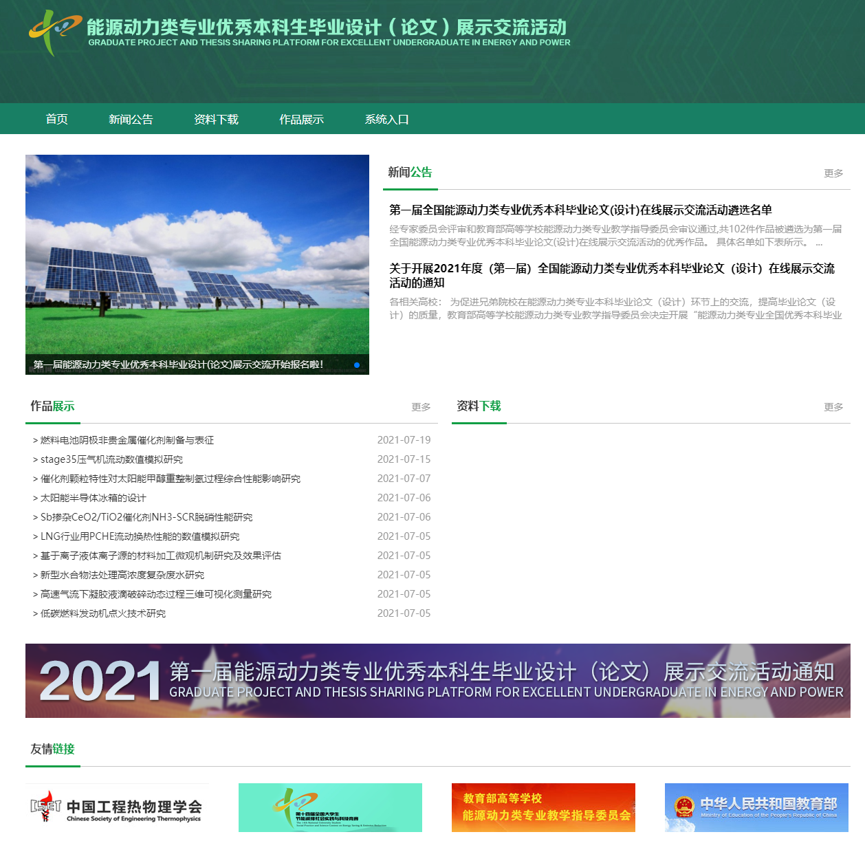 为促进各院校在能源动力类专业本科毕业论文(设计)环节上的交流,提高毕业论文(设计)的质量,教育部高等学校能源动力类教学专业委员会于2021年6月至8月开展“第一届能源动力类专业全国优秀本科毕业论文(设计)在线展示交流活动”的征集评审活动。本次活动依托于网站“能源动力类毕业论文(设计)展示交流系统(http://202.197.9.245/)”,由中国科学技术大学负责设计,国防科技大学提供技术支持。