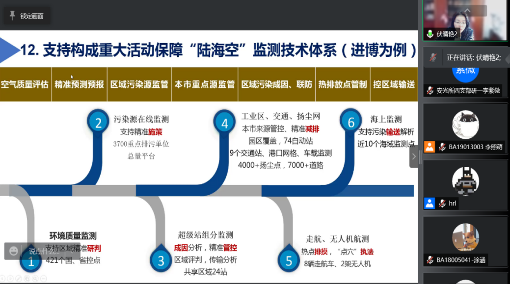 12月9 日上午9点,上海市环境监测中心副主任伏晴艳受邀做线上学术报告,报告题目为“上海环境监测技术的发展和挑战”。报告会由工程科学学院精密仪器与精密机械系执行主任刘诚教授主持。