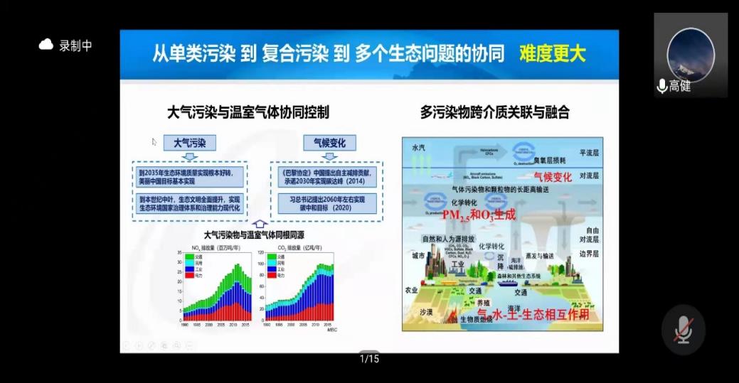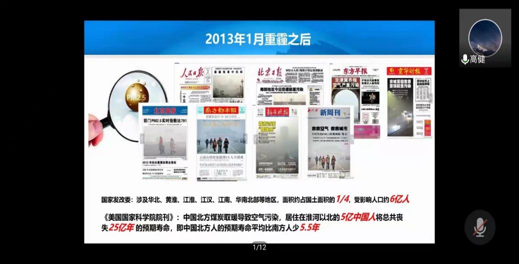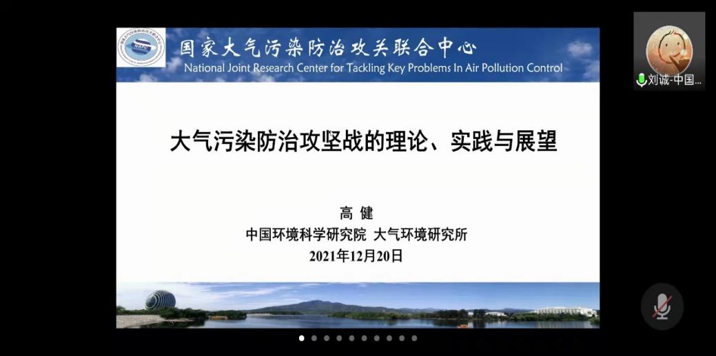 12月20日上午9点,中国环境科学研究院大气所副所长高健受邀做线上学术报告,报告题目为“大气污染防治攻坚战的理论、实践与展望”,报告由工程学院精密仪器与精密机械系执行主任刘诚教授主持。
