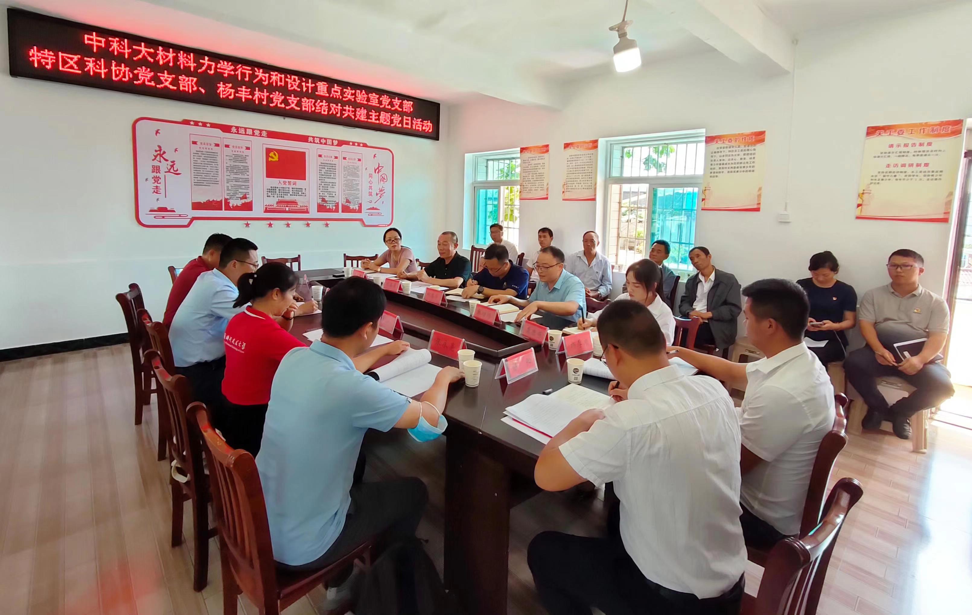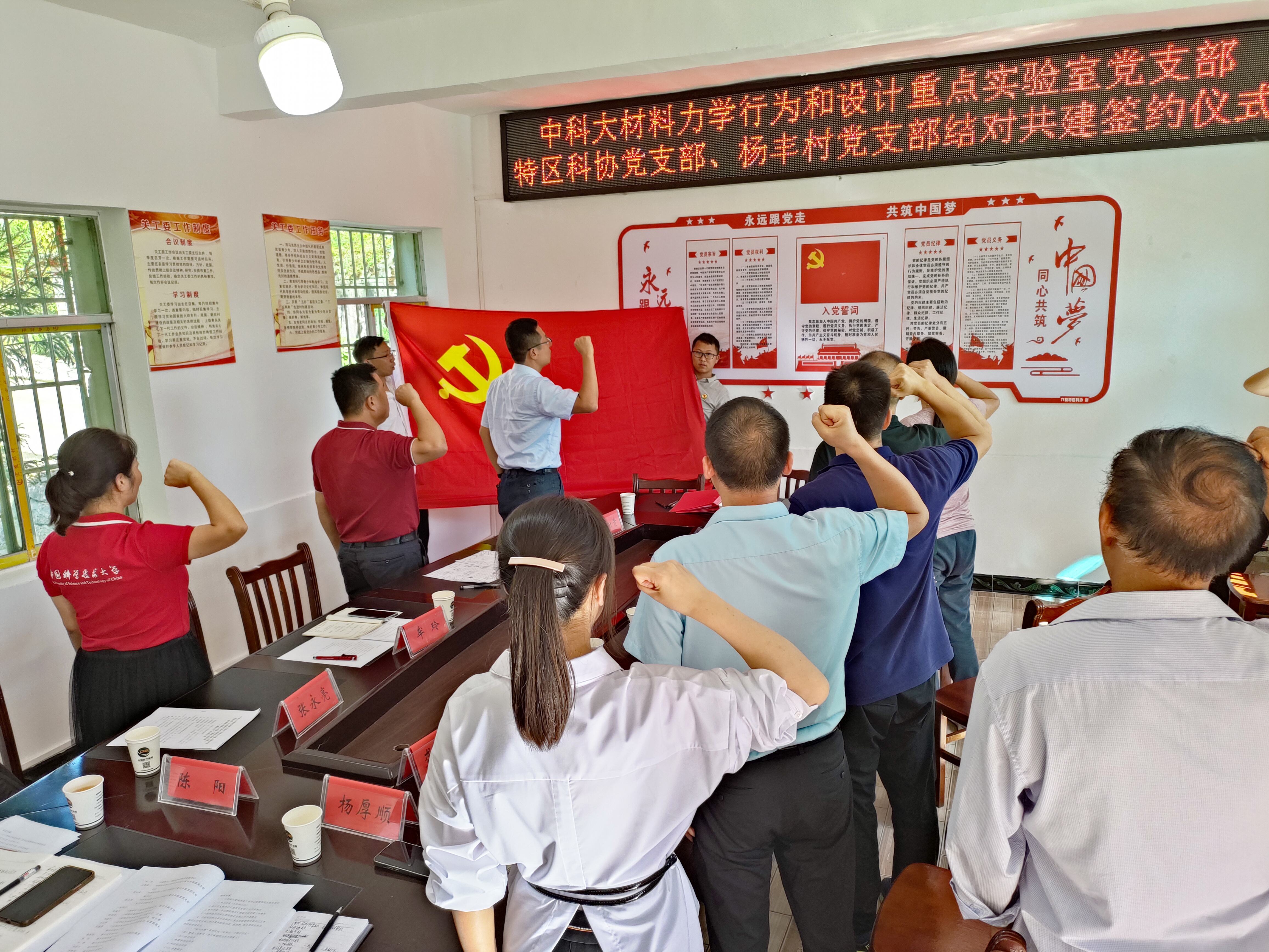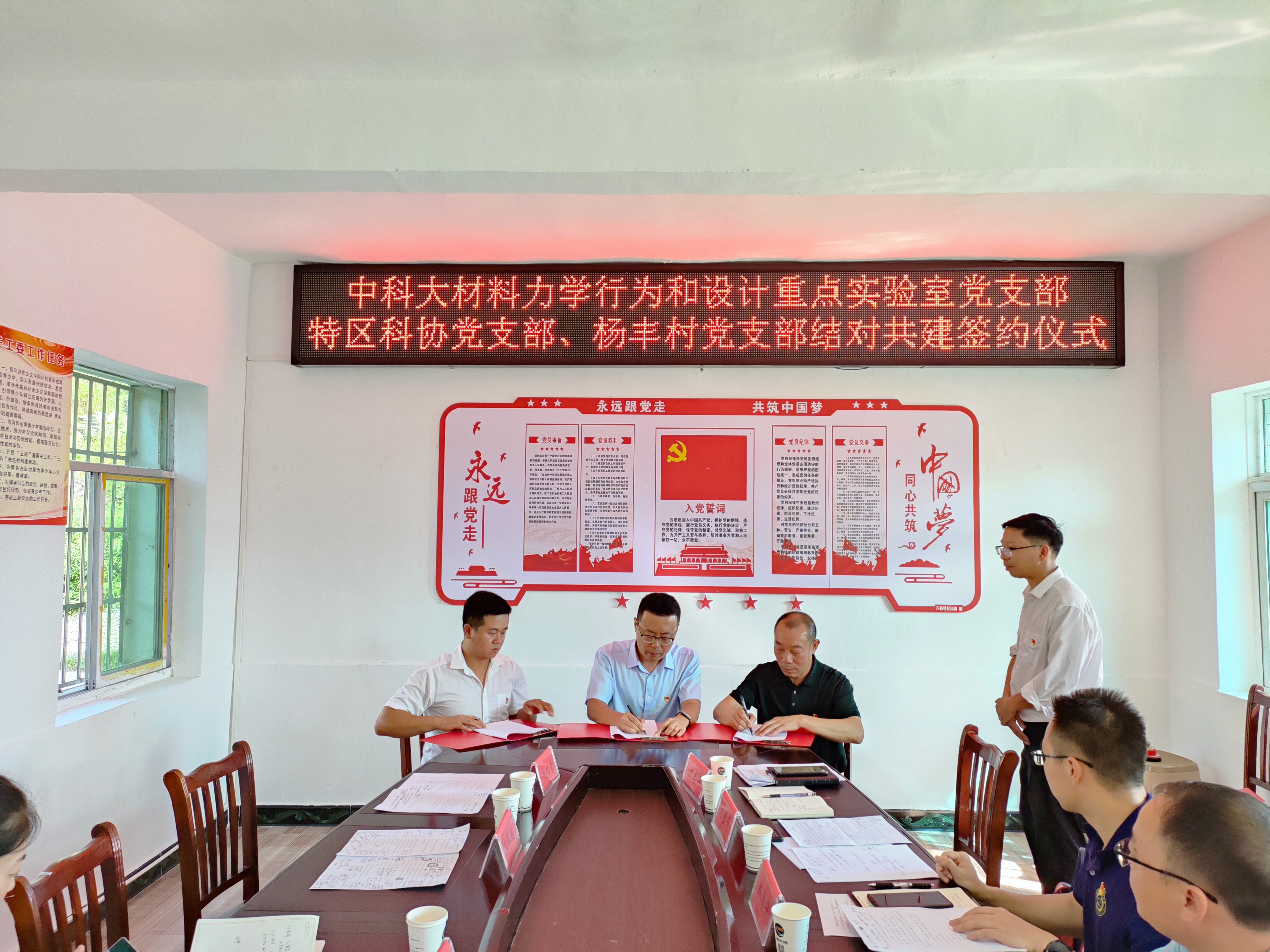 12日下午,中科院材料力学行为和设计重点实验室党支部、六枝特区科协党支部、杨丰村党支部结对共建主题党日暨签约仪式在六枝特区银壶街道杨丰村支部活动室进行。本次活动主题为“党建引领支部共建、科技助力乡村振兴”,六枝特区银壶街道党工委书记张绪鸿、副书记龚德芳,杨丰村支部书记杨厚顺、驻村第一书记陈阳等同志参加会议,会议由六枝科协主席、支部书记刘盛奇主持。