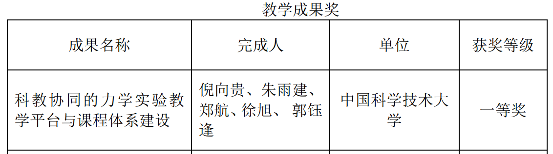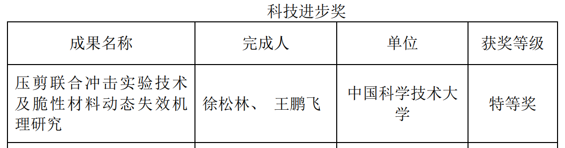 近期,安徽省力学学会主办的2022年安徽省力学教学成果奖和科技进步奖评选工作顺利完成。本次评奖共收到5项教学成果和3项科技进步成果参评,经过专家评审,安徽省力学学会奖励委员会共评出教学成果一等奖1项、二等奖3项,科技进步特等奖1项、一等奖1项、二等奖1项。我院工程科学实验教学中心倪向贵高工团队的“科教协同的力学实验教学平台与课程体系建设”获安徽省力学教学成果奖一等奖,近代力学系徐松林教授团队的“压剪联合冲击实验技术及脆性材料动态失效机理研究”获安徽省力学科技进步奖特等奖。