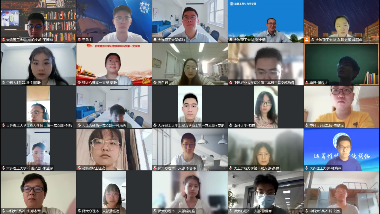 会议最后,各支部成员在云端合影留念。大家纷纷表示,这种多支部联学共建的党建工作模式不仅可以更好地学习各个支部的优秀人物事迹,彰显榜样力量,而且通过各支部的分享,可以互相学习工作方法,交流工作经验,提高工作效率。(近代力学系2021级博士生党支部)