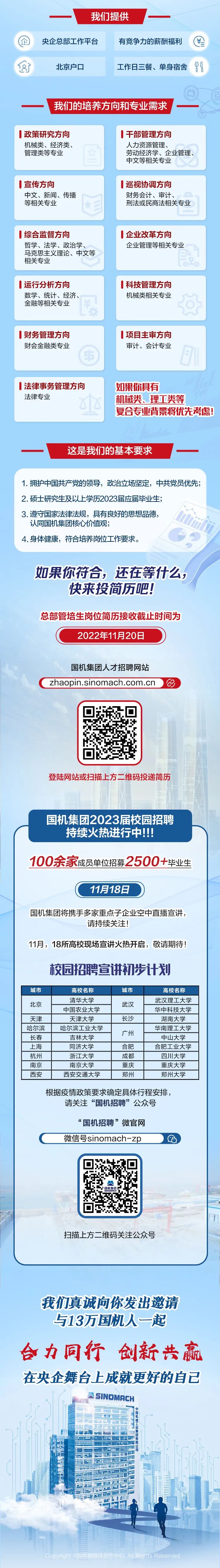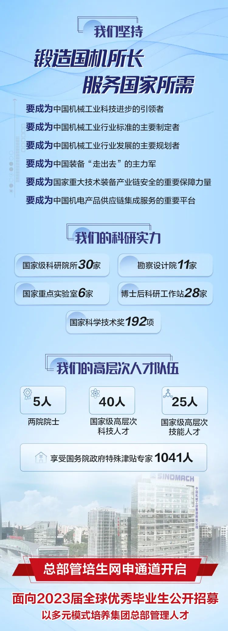 中国机械工业集团有限公司总部2023届管培生校园招聘全面启动!