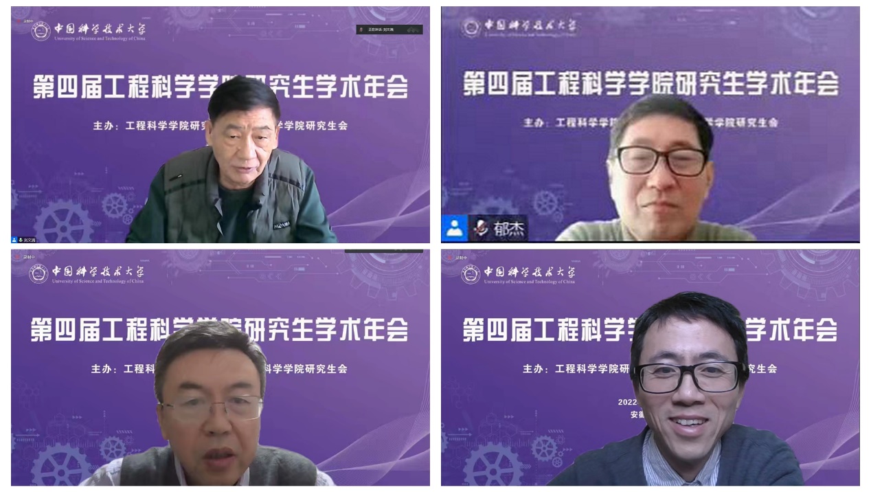 12⽉23⽇,中国科⼤“第四届⼯程科学学院研究⽣学术年会”在线上举行。中国工程院院士刘文清、中国科学院院士陆夕云、中国科学技术大学党委书记舒歌群、中科院合肥研究院核能安全技术研究所党委书记、常务副所长郁杰、中国科学院工程热物理研究所副所长隋军、地球和空间科学学院执行院长汪毓明以及工程科学学院有关领导和师生参加了此次会议。本次学术年会分为主会场和三个分会场,包含4场特邀报告和37场研究生报告。