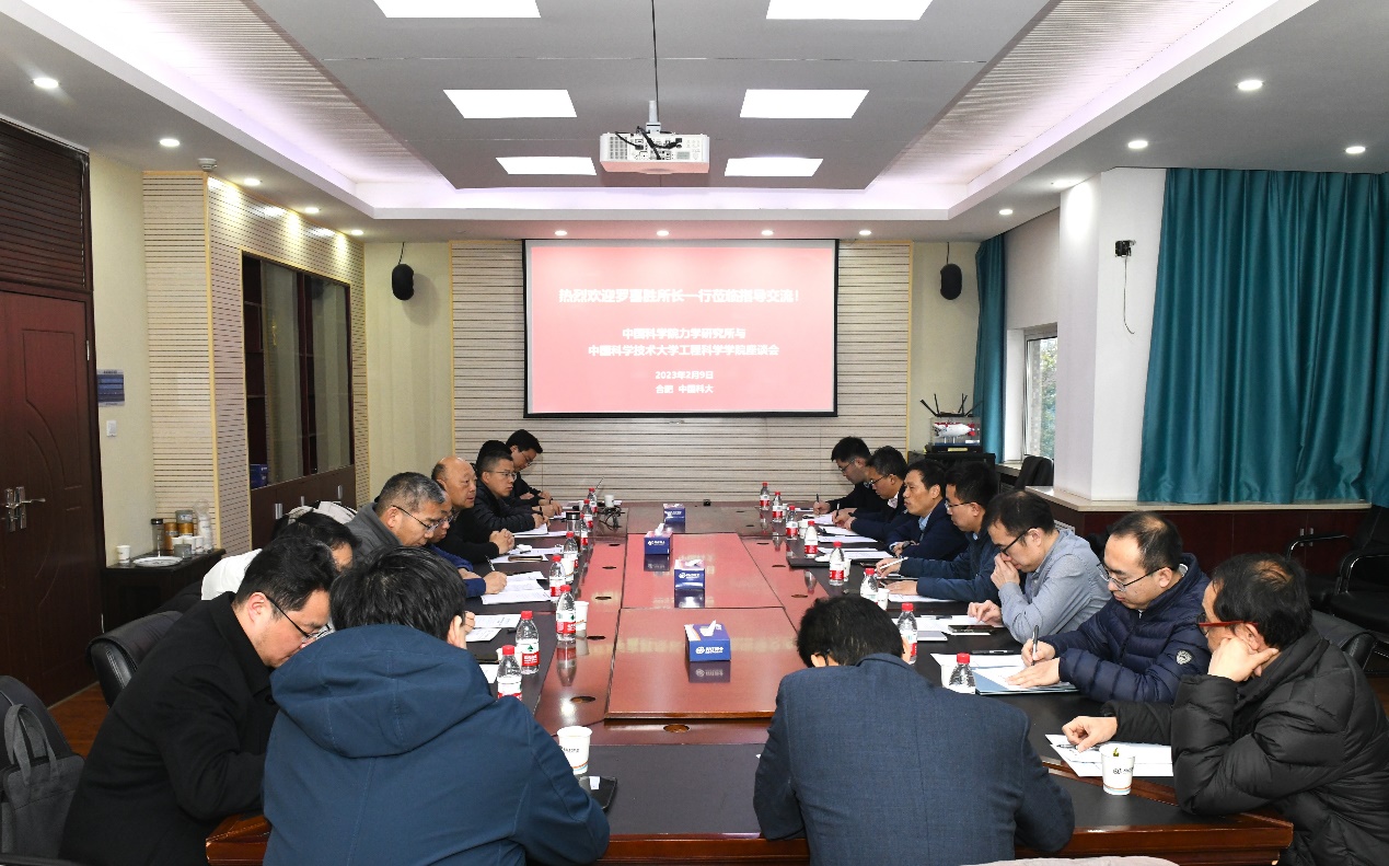 2月9日上午,中国科学院力学研究所所长、党委副书记罗喜胜,人力资源处处长卢哲猛、教育处处长刘小明、综合处处长朱国立、科技处处长王一伟一行5人赴中国科大工程科学学院就科教融合相关工作进行座谈交流。工程科学学院学术委员会主任陆夕云院士、执行院长吴恒安,党委副书记赵凯,副院长倪勇、裴刚、司廷,校对外联络与基金事务处副处长王奉超,中国科大研究生院综合与所系结合办公室业务主管陈宇,近代力学系执行主任李二强、教学主任王海龙、副主任马宏昊、程万特任教授与相关教师出席会议。会议由吴恒安主持。