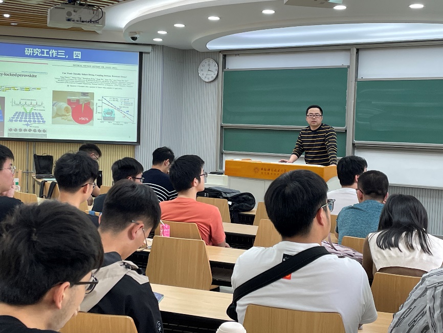 陈杨教授简要介绍了自己在“微纳光学”“微纳光电器件”等方向的研究成果,以及在美国和新加坡的科研经历。其研究成果以及广阔的应用前景引发了同学们强烈的探索欲望。