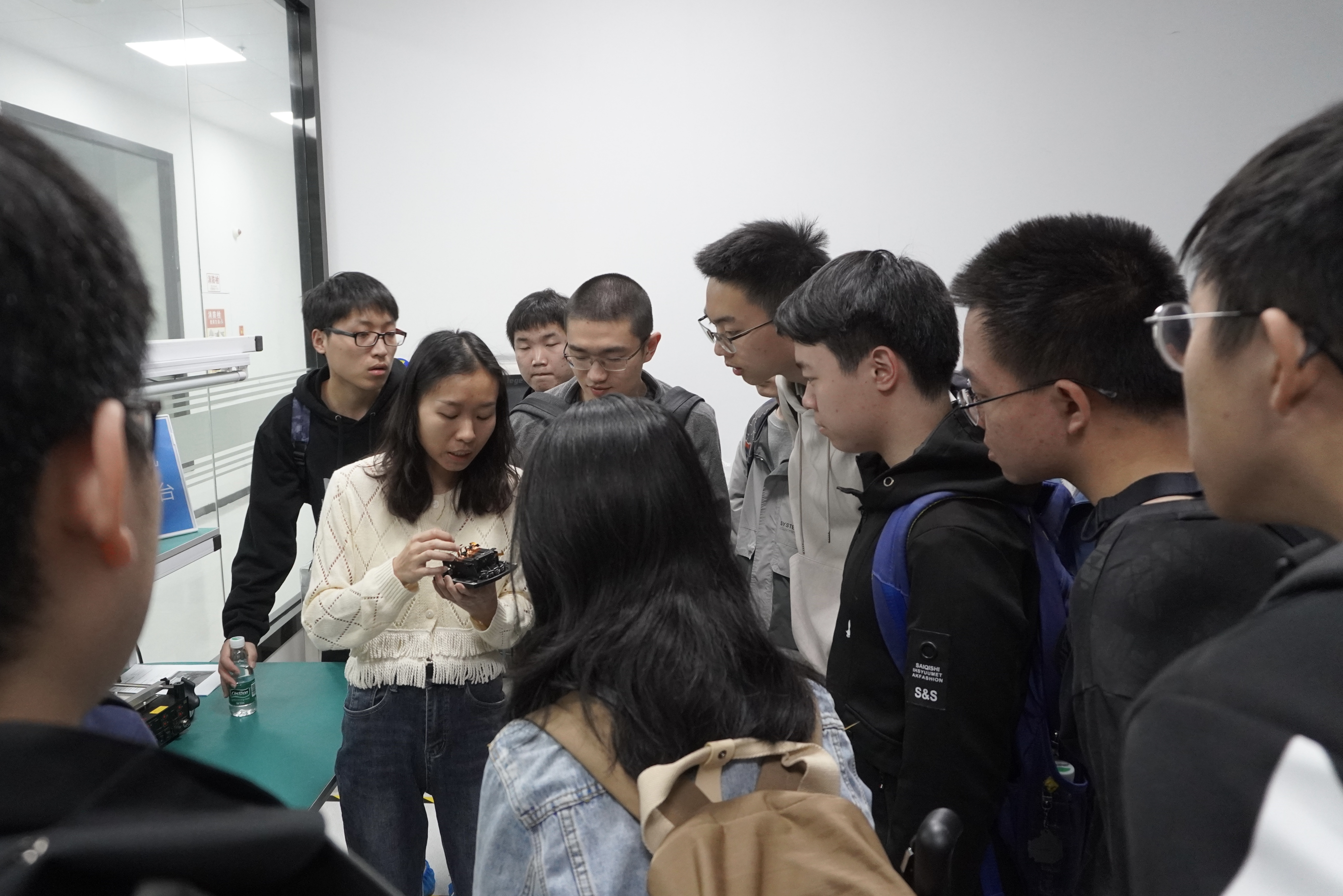在速腾聚创公司,同学们接触到了世界前沿的激光雷达扫描技术,同技术人员进行了沟通交流,实地参观了电磁干扰信号测试、电气、环境、防水、防尘等实验室,了解了产品测试的具体情况。在材料力学实验室中,同学们看到万能拉伸试验机;在振动监控实验室中,观看到正在进行的二维振动测试。大家很自然地与本院讲授的材料力学、振动理论等课程进行了有机联系,对自身所学的专业知识和应用有了更深刻的理解。