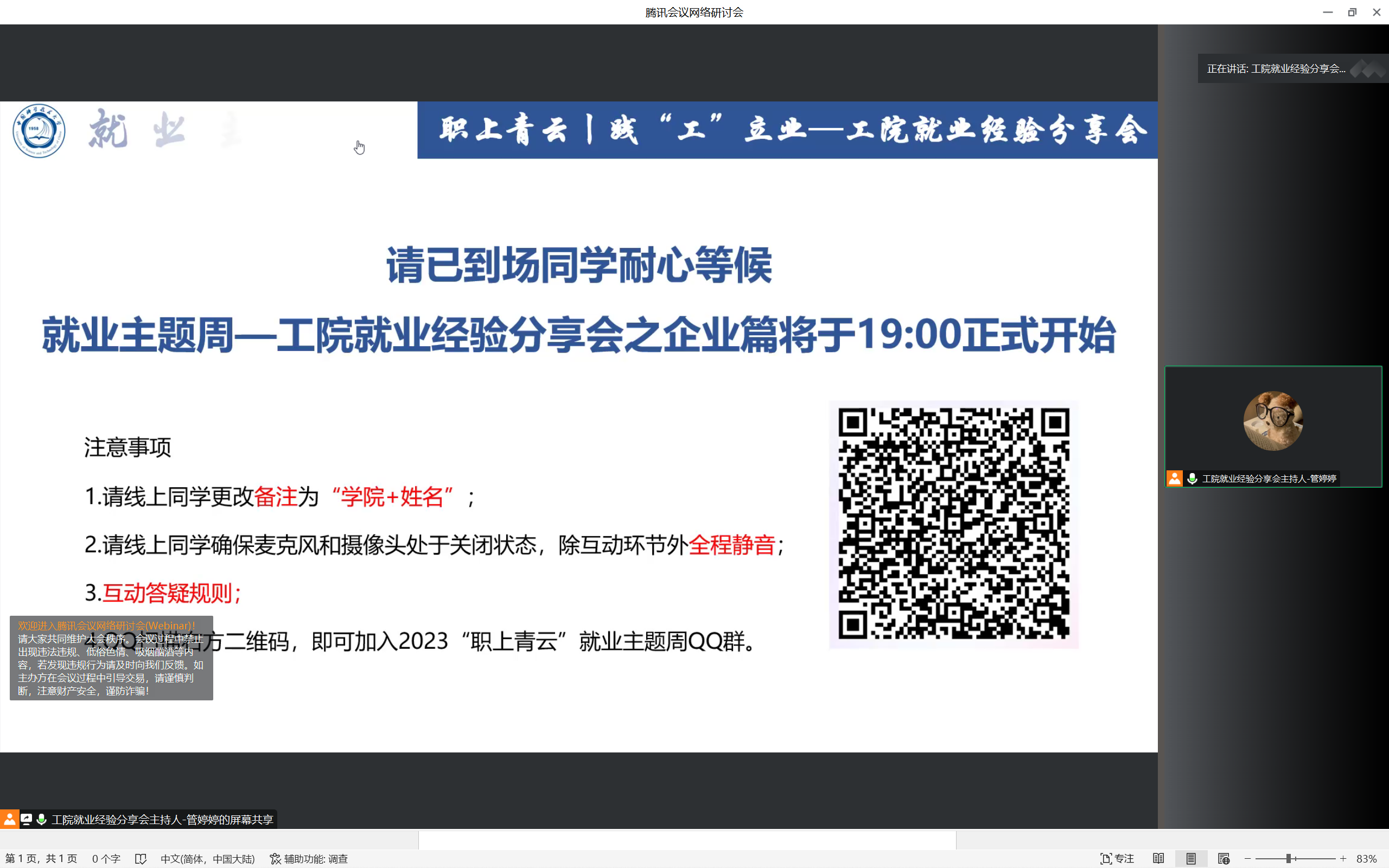 2023年4月15日、16日晚19:00工院就业经验分享会成功举办。本次经验分享会由校团委、工程科学学院团委主办,工程科学学院研究生会承办,校研究生会协办,分为企业篇与选调篇。分享会邀请了8位来自于不同专业、有着不同职业选择的师兄师姐,通过线上交流分享的形式,吸引了工院近200名学子的在线参与,助力工院学子做好职业规划,提升求职能力。