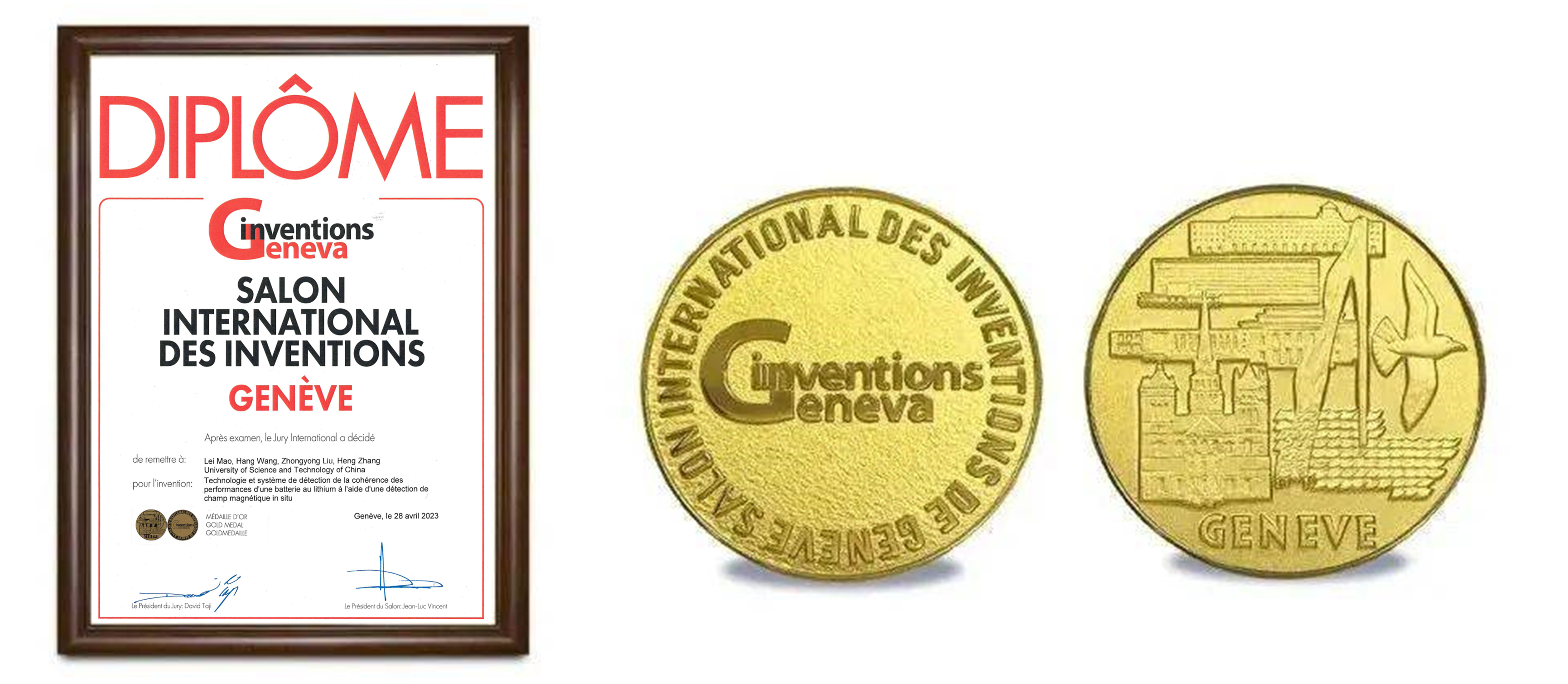 近日,第48届日内瓦国际发明展在瑞士日内瓦闭幕,并对外公布获奖名单,中国科学技术大学工程科学学院毛磊研究员团队的参展作品“基于原位磁场感知的锂电池组性能一致性检测技术及系统”(Technology and system of performance consistency detection for Lithium battery pack using in-situ magnetic field sensing)获得金奖(图1)。