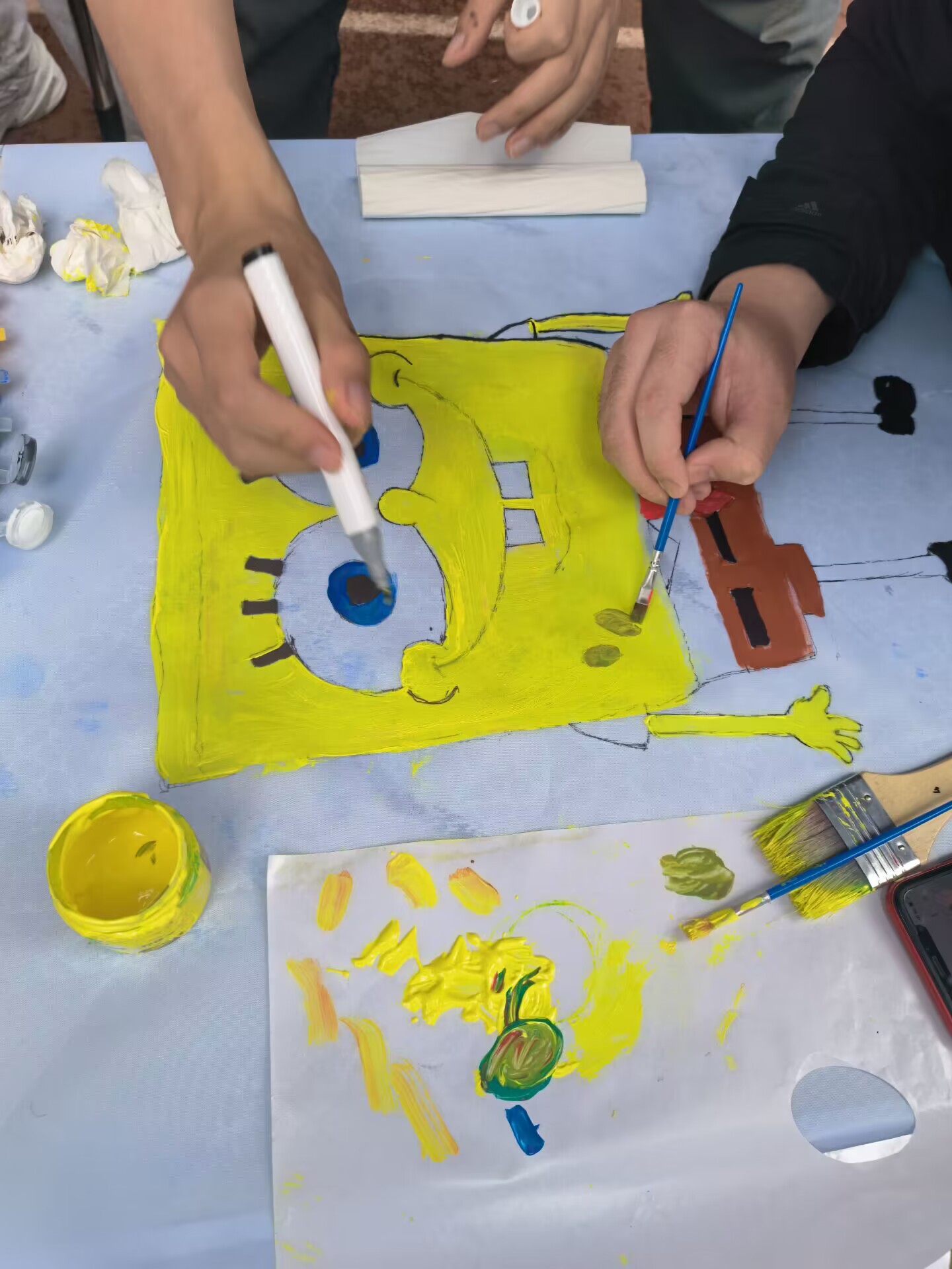 活动伊始,同学们充分发挥想象力,为各自的队伍设计队旗。“合二为一”队旗的设计主体为海绵宝宝形象,其左右手分别握着锤子和镰刀,既体现了我院特色,又饱含莘莘学子对党的一片赤诚之心。