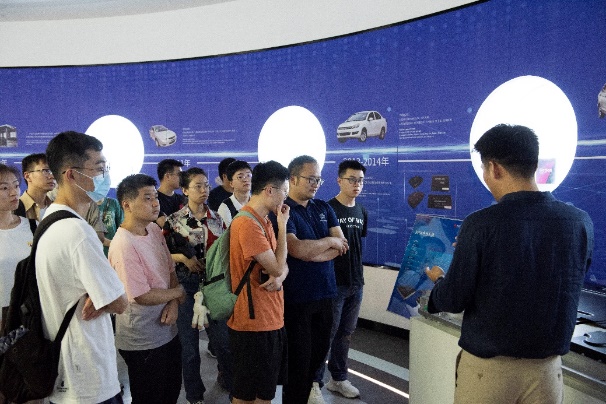 国轩高科中国业务板块营销中心商用车销售总监胡涂带领同学们参观了国轩高科中国总部方圆馆展厅,并从公司发展历程与战略、全球布局、业务流程、合作伙伴等方面介绍了国轩高科的发展历程与企业优势,以及电芯、三元材料、动力电池组、电池管理系统等主要产品,分享了让绿色能源服务于人类的公司理念。