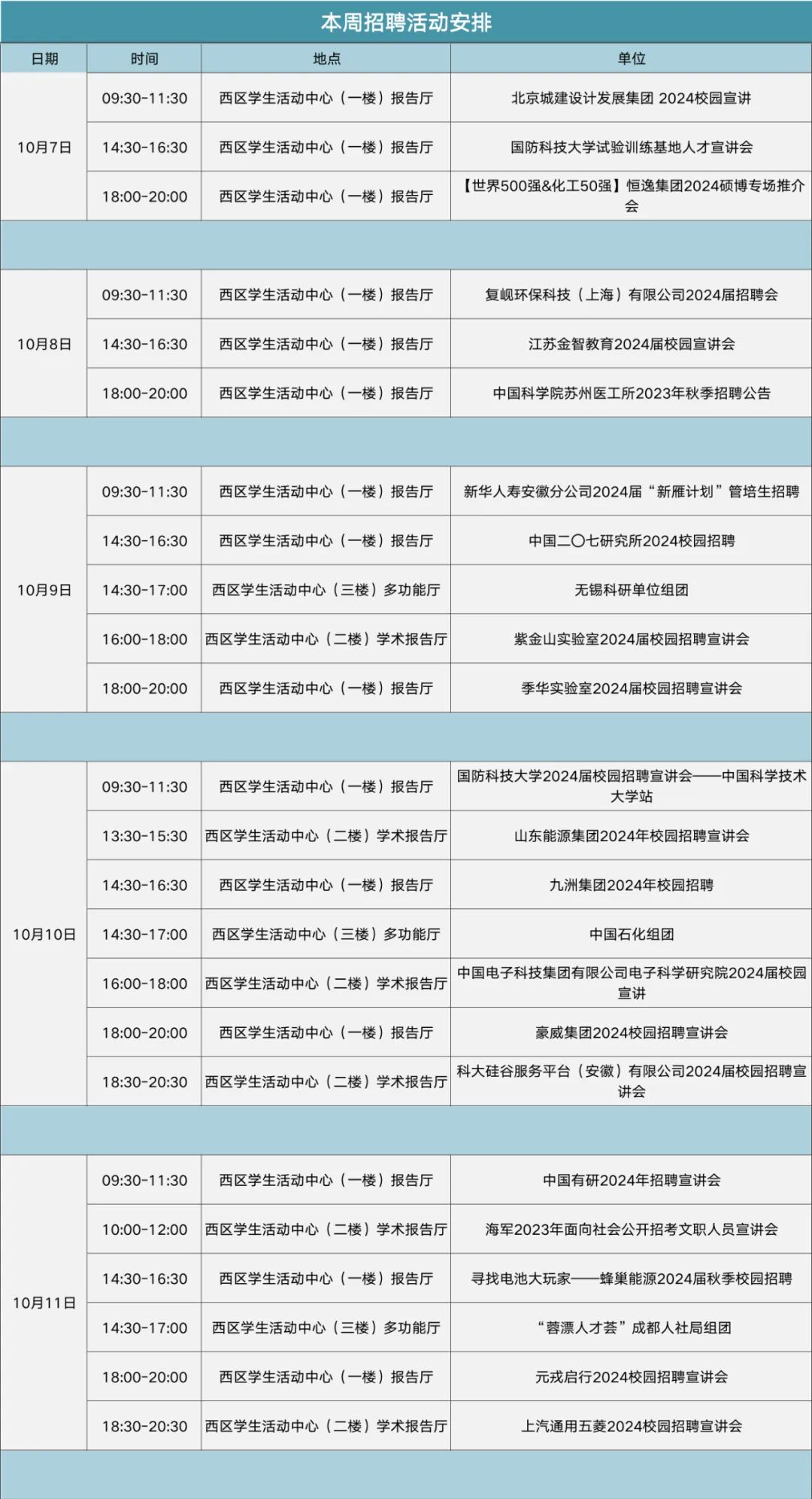 近期校园线下招聘活动汇总(10月7日-10月11日)