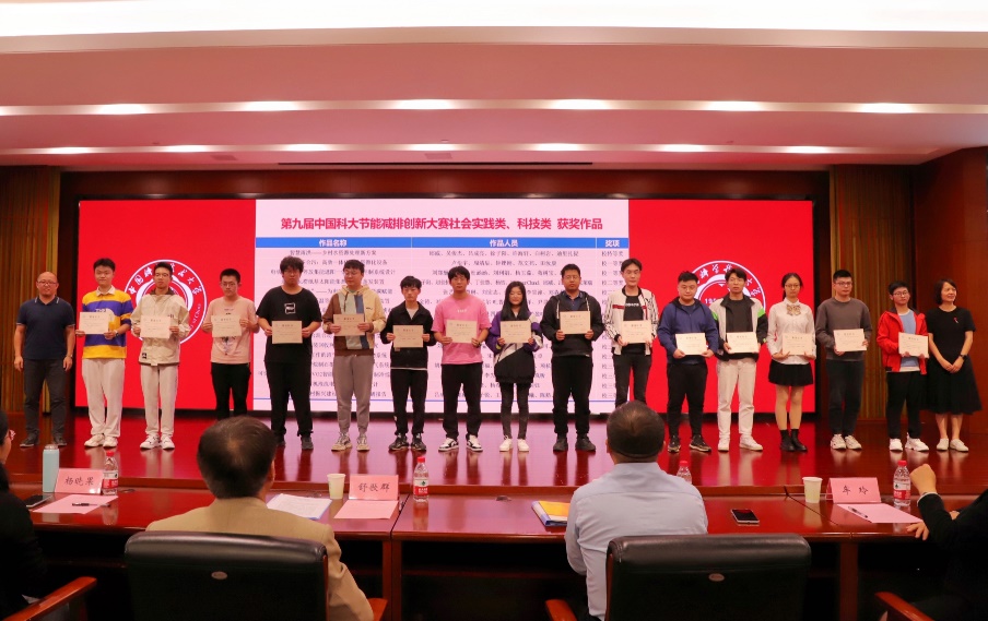 10月12日下午,第九届中国科大节能减排创新大赛暨第十六届全国大学生节能减排社会实践与科技竞赛颁奖典礼在东区师生活动中心五楼报告厅隆重举行。校党委书记舒歌群出席典礼并为获奖团队颁奖,校团委书记杨晓果、基本建设处副处长赵国飞,工程科学学院执行院长吴恒安、党委副书记牟玲,环境科学与工程系党总支书记张文真、热科学和能源工程系党总支书记胡芃、获奖团队代表参加了颁奖典礼。
