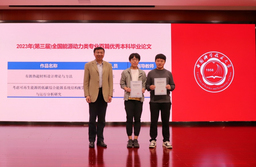 颁奖环节,舒歌群为在第十六届全国大学生节能减排社会实践与科技竞赛中获得二等奖的姚禹团队、刘美玲团队以及2023年(第三届)全国能源动力类专业百篇优秀本科毕业论文(设计)获得者周以诺、曹先容进行颁奖;吴恒安、杨晓果为第十六届全国大学生节能减排社会实践与科技竞赛三等奖的邱威团队、路雅顺团队、刘利娟团队和卢治宇团队进行颁奖;赵国飞、张文真为第九届中国科大节能减排创新大赛社会实践类与科技作品类获奖团队进行颁奖。