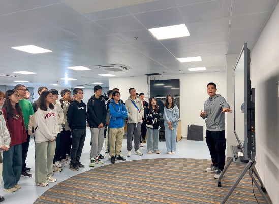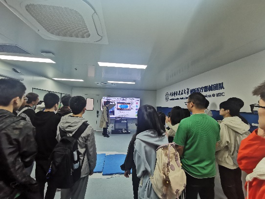 在明德楼展厅,褚家如为同学们介绍了中国科大苏州高等研究院的发展历程。作为苏州独墅湖科教创新区最早入驻的高校之一,其前身中国科大苏州研究院于2020年转型升级为中国科大苏州高等研究院,开启了我校与苏州合作的新篇章,通过深化校地合作,打造以新兴产业发展需求为导向、具有鲜明特色、世界一流的人才培养和科学研究机构。褚家如从学科建设、人才引进、学术交流等方面全面介绍了苏州高等研究院的基本情况和取得的主要成绩,并以工程科学学院学长的身份,勉励同学们积极了解前沿学科发展与产业技术需求,为自身生涯规划提前筹谋、开拓思路,及早树立人生目标,实现更好地发展。