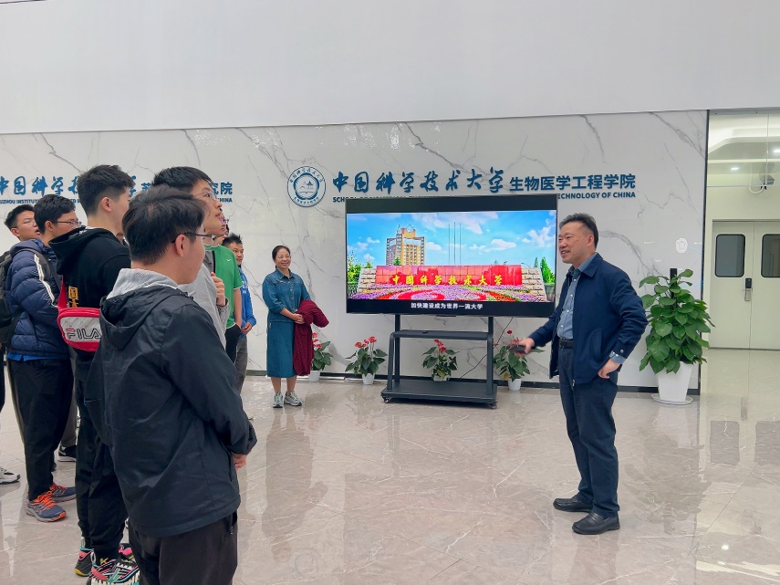 在生物医学工程学院多模态血管诊疗实验室,中国科大苏州高等研究院人力资源部部长徐晓嵘教授以《从机械制造到生物制造》为题,为同学们做了精彩的分享。他结合自己求学和工作经历,介绍了从最初的精密仪器专业到后来的生物医学工程领域,经历了跨学科的挑战与创新,为同学们讲解了目前从事的主要科学研究方向,并与大家进行了互动交流。
