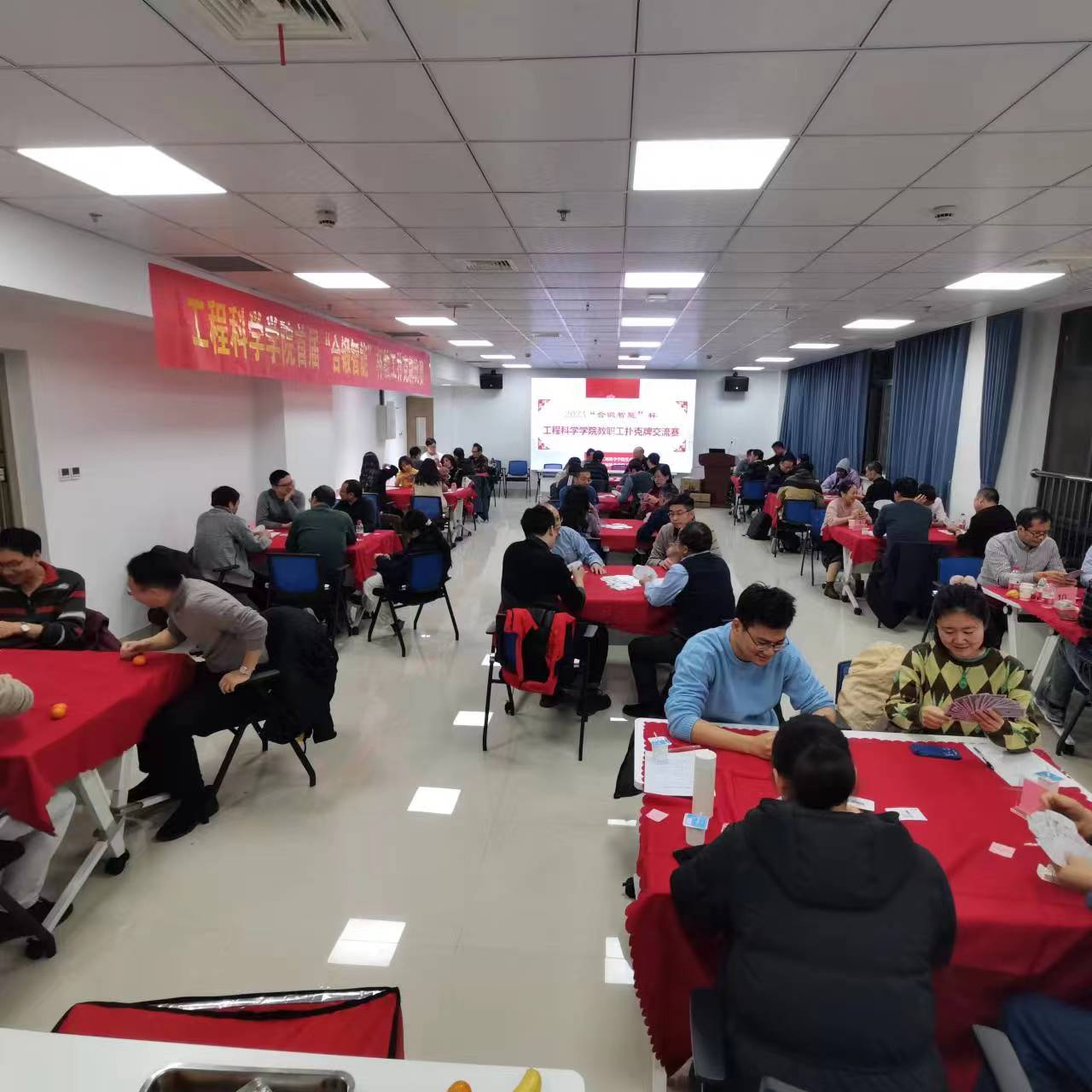 为喜迎2024元旦佳节,加强教职工之间沟通交流与团结合作, 2023年12月29日晚,工程科学学院成功举办“合锻智能”杯教职工扑克牌交流赛,近60名教职工欢聚一堂,兴致勃勃地参加了比赛。