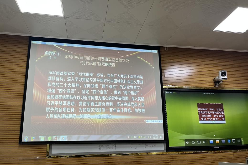 首先,王一鸣同志带领与会同志共同学习了《中共中央宣传部关于授予海军南昌舰党委“时代楷模”称号的决定》,随后带领与会同志集中观看了“时代楷模”发布仪式和反映南昌舰党委先进事迹的短片。