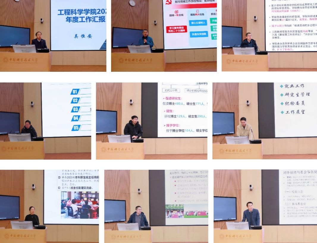 王晓平在总结讲话中对工程科学学院2023年取得的各项成绩表示充分肯定和祝贺。他表示,学院全体教职工继承和发扬钱学森先生科学严谨、无私奉献的崇高精神,关心和重视人才培养,在潜心立德树人和执着攻关创新方面努力探索,采取一系列创新举措,取得一批突出的成果和亮点。他强调,发展是主线,安全是底线,希望学院统筹发展与安全,从学科发展的角度谋划资源配置,更好地展示“工程科学”的风格和特色,推动学院高质量发展。