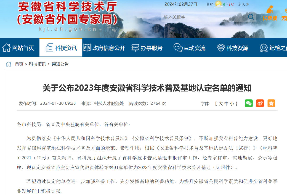 工程科学实验教学中心被认定为安徽省科学技术普及基地