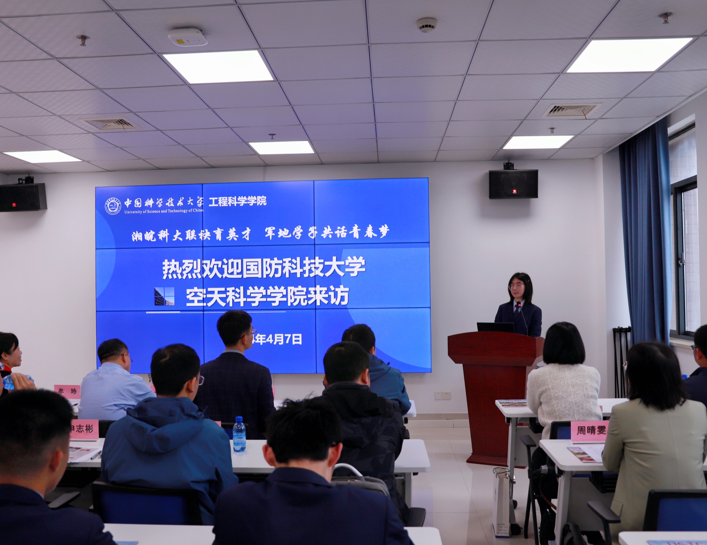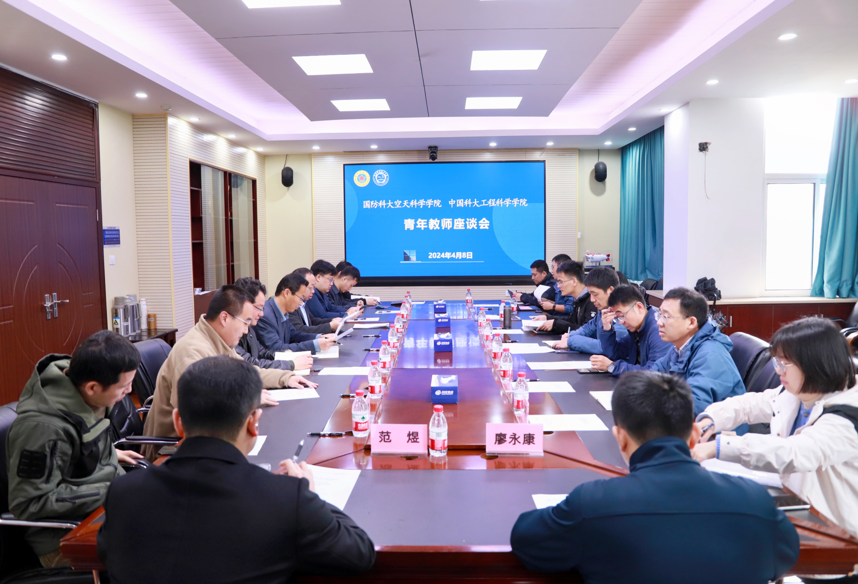 4月8日上午召开了国防科大空天科学学院-中国科大工程科学学院青年教师座谈会,双方围绕人才引进、学生培养、学科建设、教学科研等方面展开深入交流和热烈讨论,就后续举办教师交流会、科研项目合作、英才班参观实践等相关事项达成一致意见。