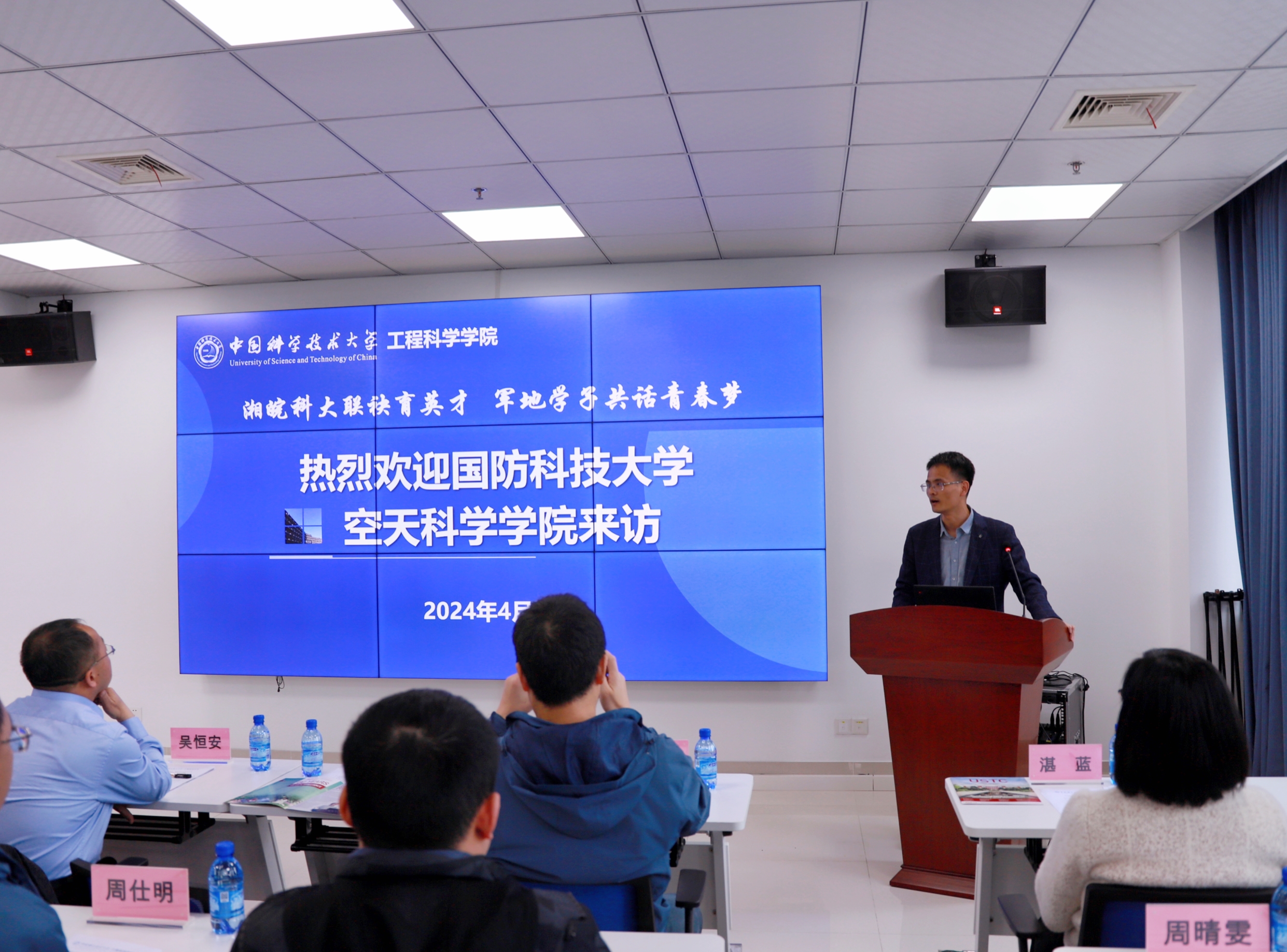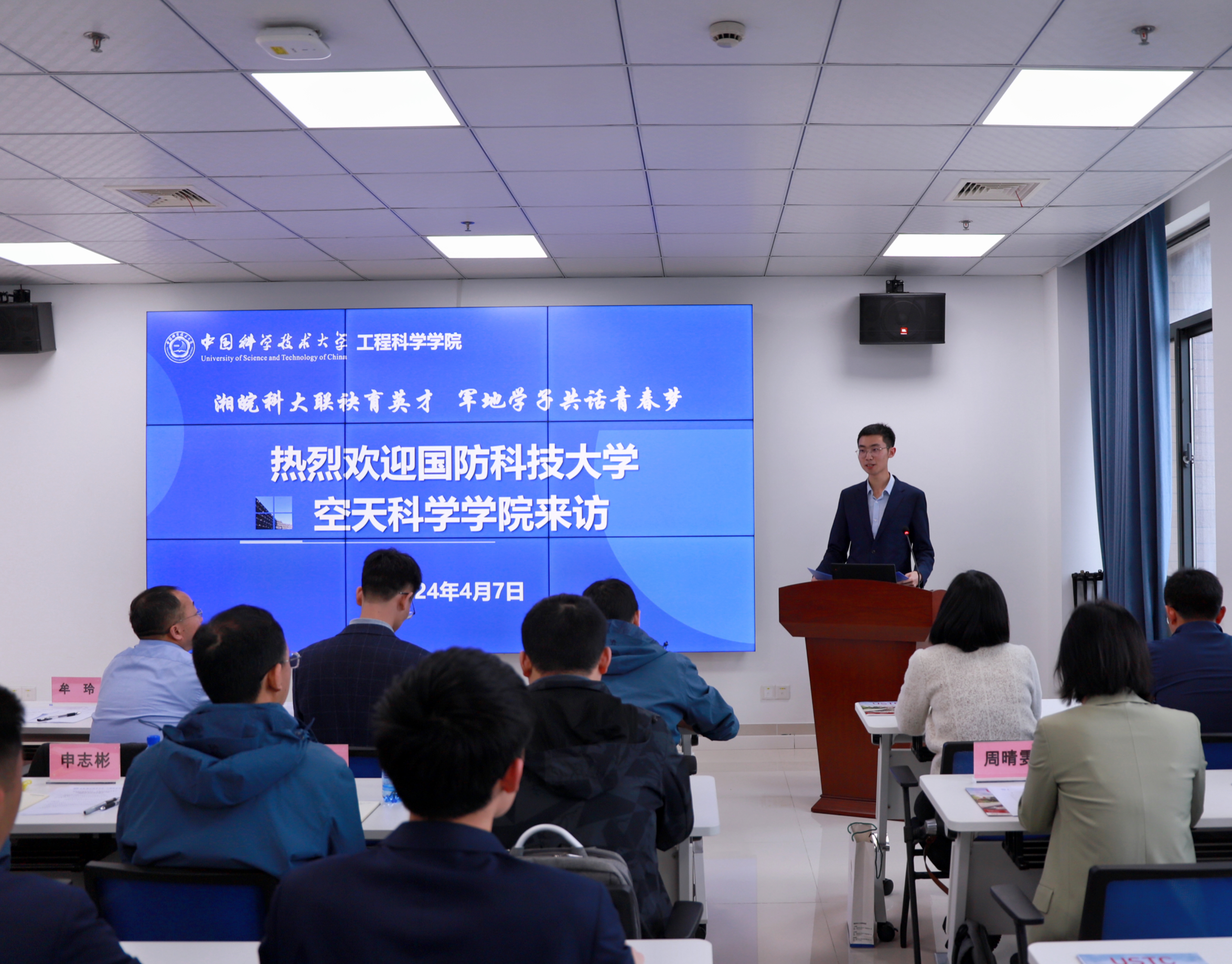 国防科大空天科学学院院长罗亚中在讲话中对工程科学学院领导和老师对此次访学活动的细致安排、周到考虑和热情接待表示衷心感谢,表达了师生对本次访学活动丰富的教学内容充满期待。罗亚中表示,国防科大空天科学学院的前身是钱学森先生倡导成立于哈尔滨军事工程学院的导弹工程系,与中国科大工程科学学院渊源深厚,期待双方学院在人才培养、科学研究等方面进行深入研讨交流,希望航天力学拔尖班的同学们珍惜此次学习机会,认真学习中国科大辉煌的办学历史,欢迎并期待中国科大优秀学子赴国防科大学习实践。