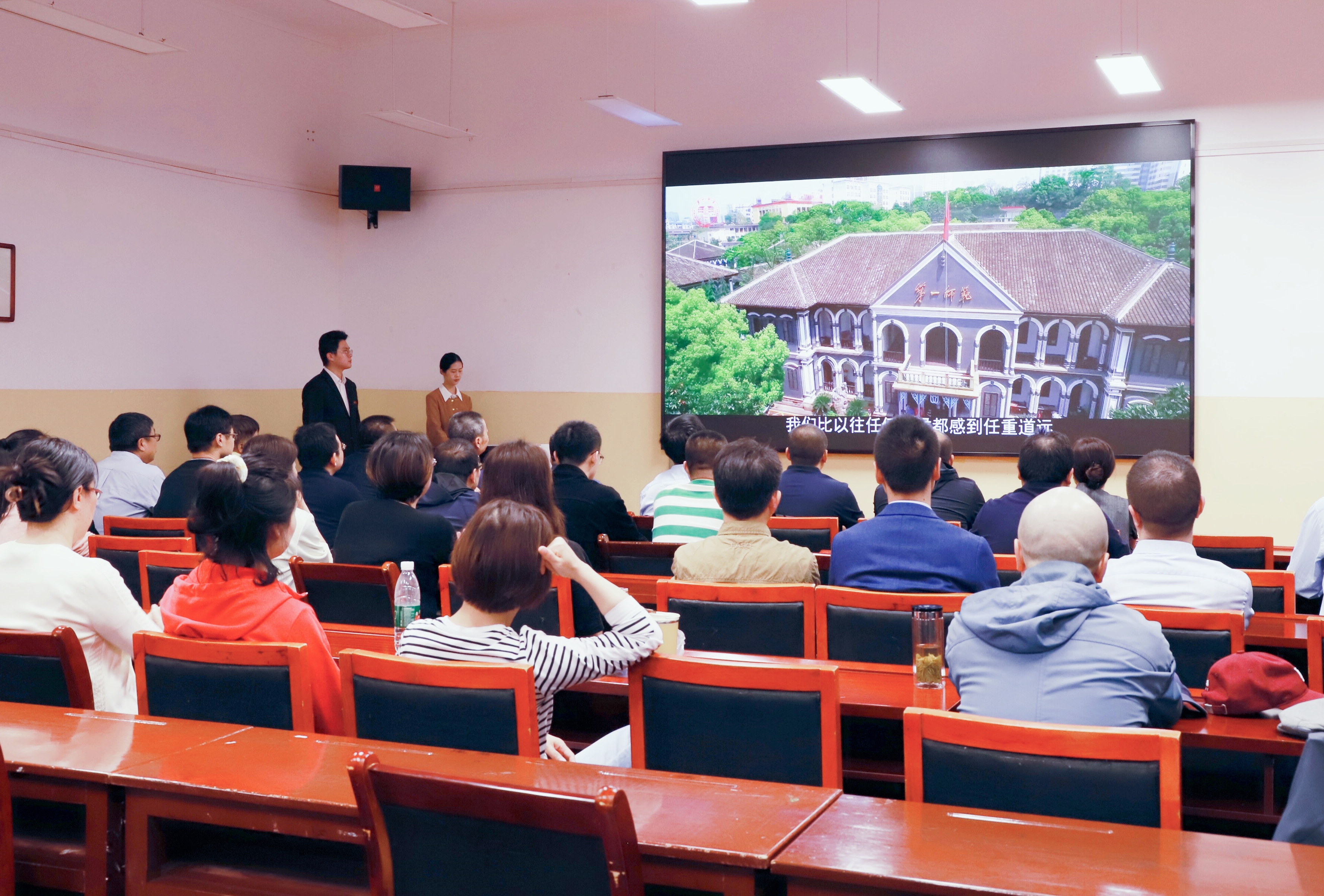 在第一师范学院会议室,同志们集体观看了杨开慧、任弼时等前辈的红色故事教育片,聆听了学院党委书记刘明侯《沿着总书记的足迹、传承老一辈革命家精神》的主题党课,他号召党员同志们学史力行、学以致用,把老一辈革命家的优良工作作风运用到教学科研工作实际中去,坚持立德树人,讲好中国故事。