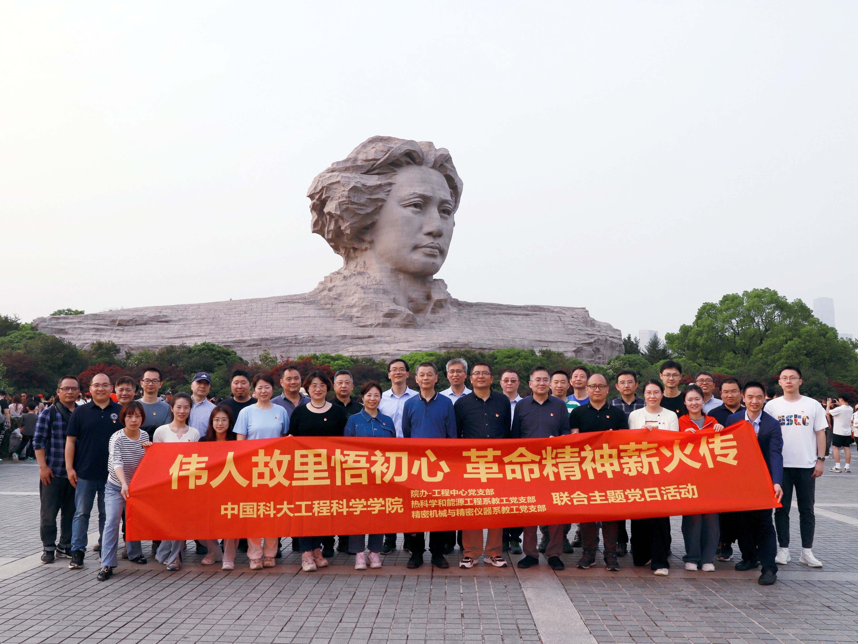 为追忆伟人风采,传承红色精神,加强理想信念教育,2024年4月13日至14日,工程科学学院办公室-工程中心党支部联合热科学和能源工程系教工党支部、精密机械与精密仪器系教工党支部赴一代伟人毛泽东同志故乡湖南开展了“伟人故里悟初心、革命精神薪火传”主题党日活动。