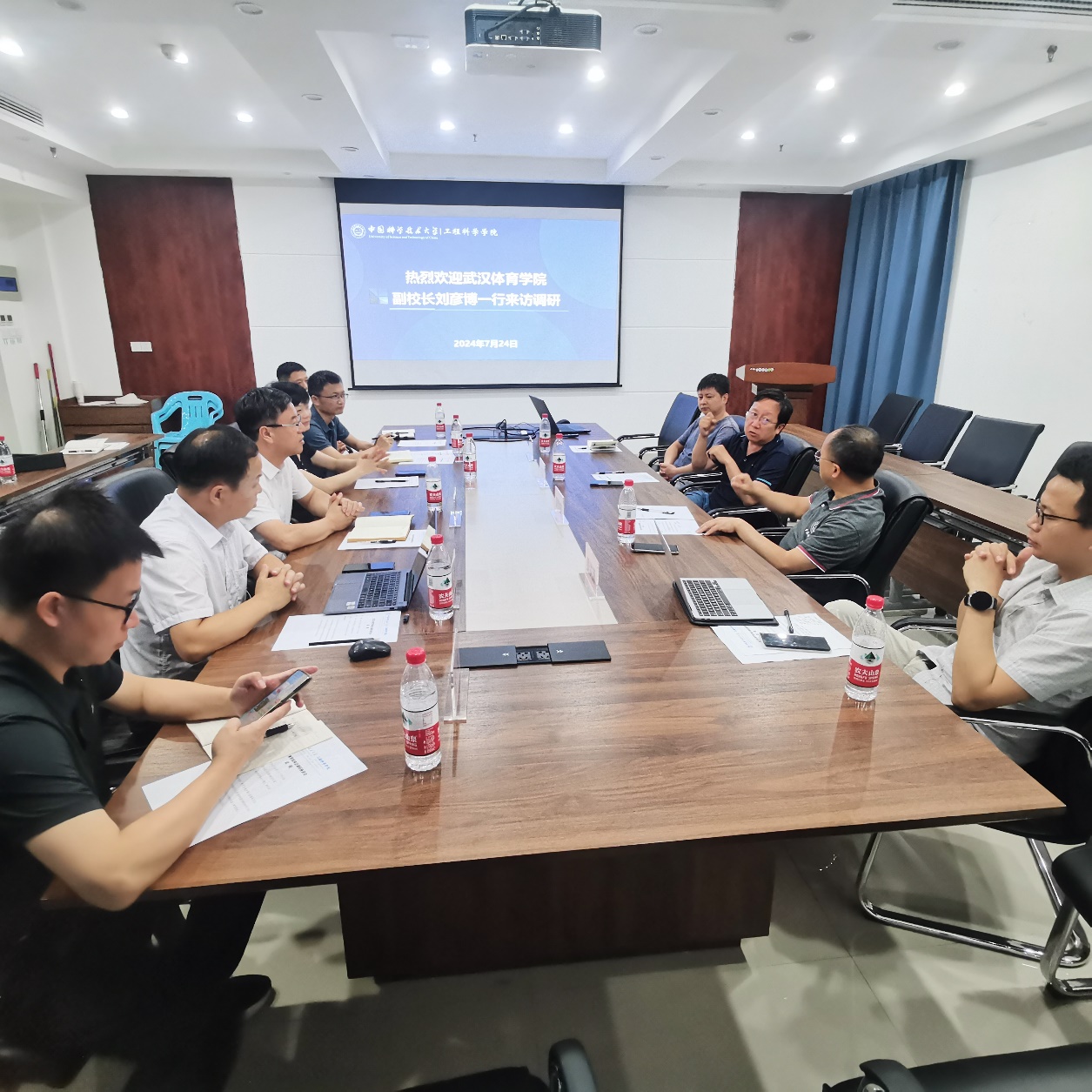 刘彦博对我院的热情接待表示衷心感谢。他介绍了武汉体育学院的办学历程、学科特色以及体育与人工智能融合发展的新形势。他表示,中国科大工程科学学院在前沿科学和高新技术方面实力雄厚,武汉体育学院在体育科技创新、机器人研发、人才等方面有着急迫的需求,期待工程科学院能够给予倾力指导和大力支持。