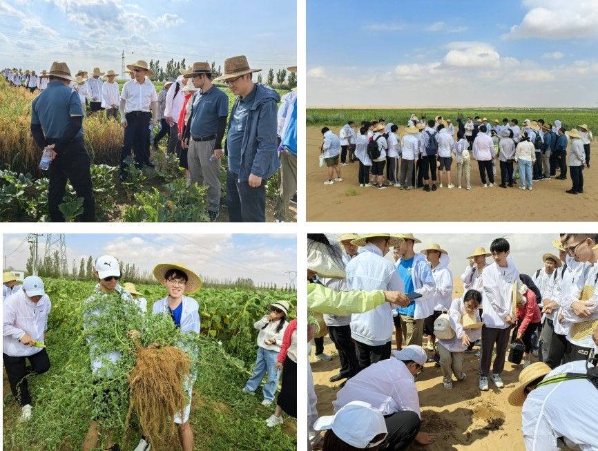 黄沙万里昔日荒,今朝绿意盎然生。师生们在易志坚教授的带领下参观了这片大漠中的“绿洲”,亲眼见证了“沙变土”实验,在动手进行劳动实践的过程中发现了植物经过“土壤化”的沙地所拥有的独特“倒状结构”,对沙漠土壤化治理的力学机理、技术路线与实施成效有了深刻的认识。